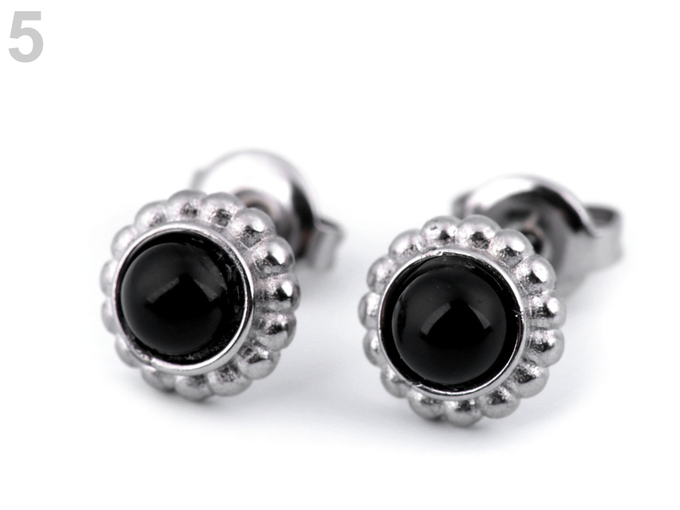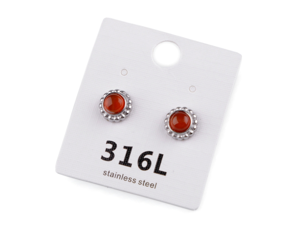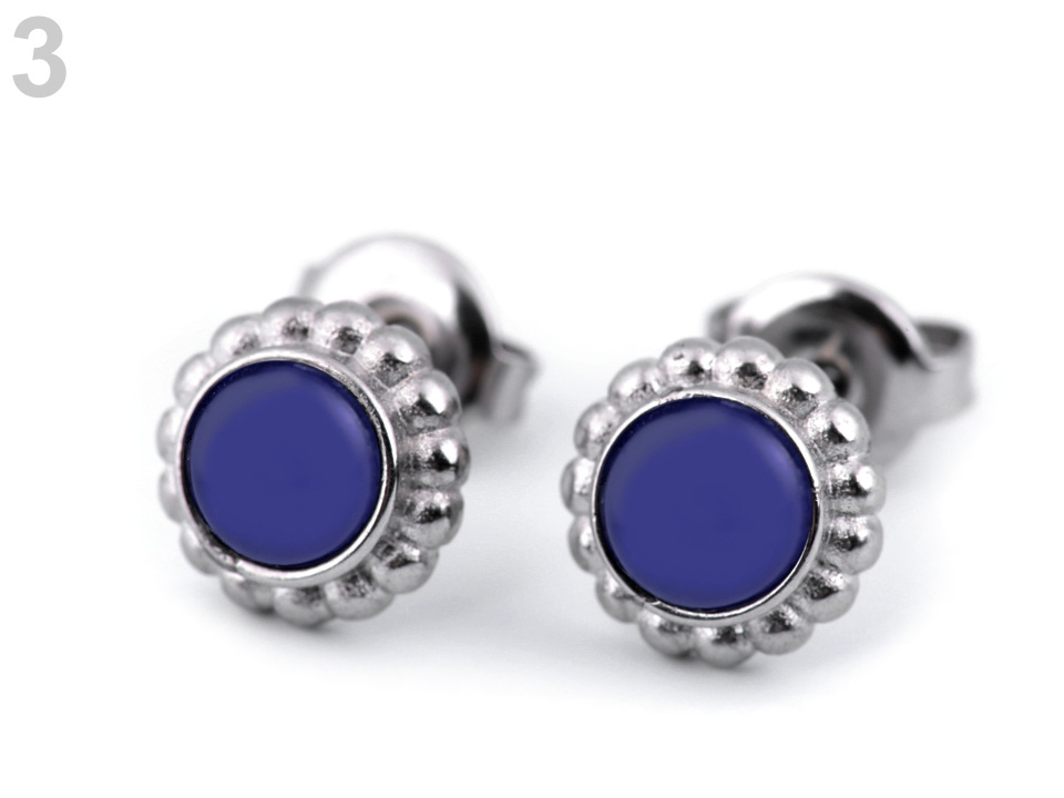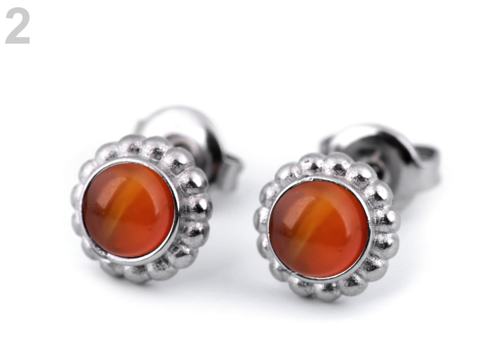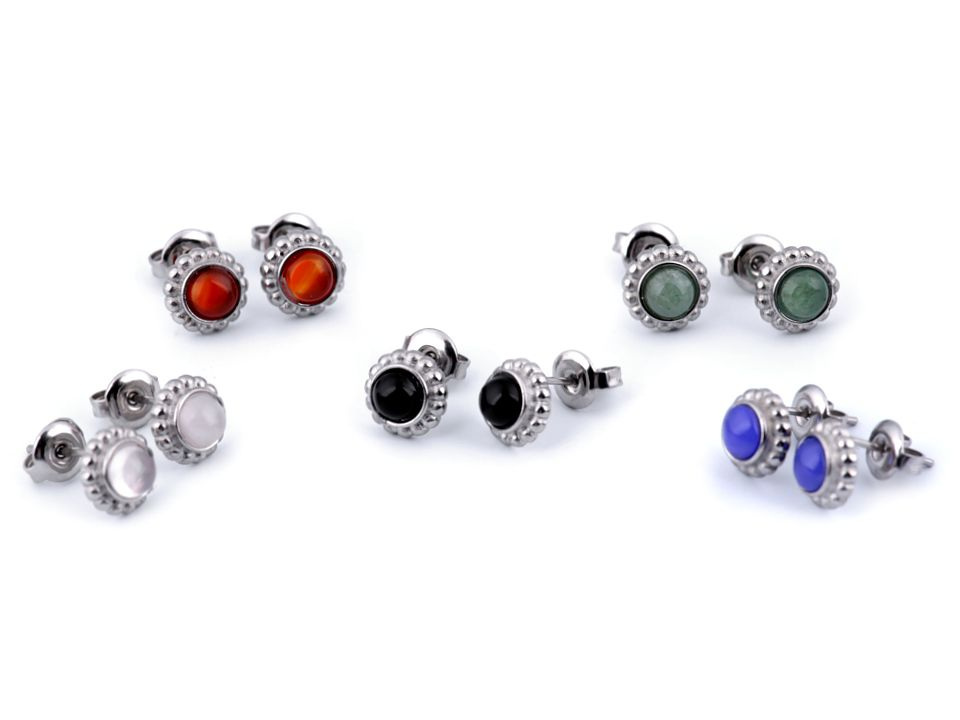 Náušnice z nerezové oceli doplňují barevné kuličky, které působí jako kamínky.