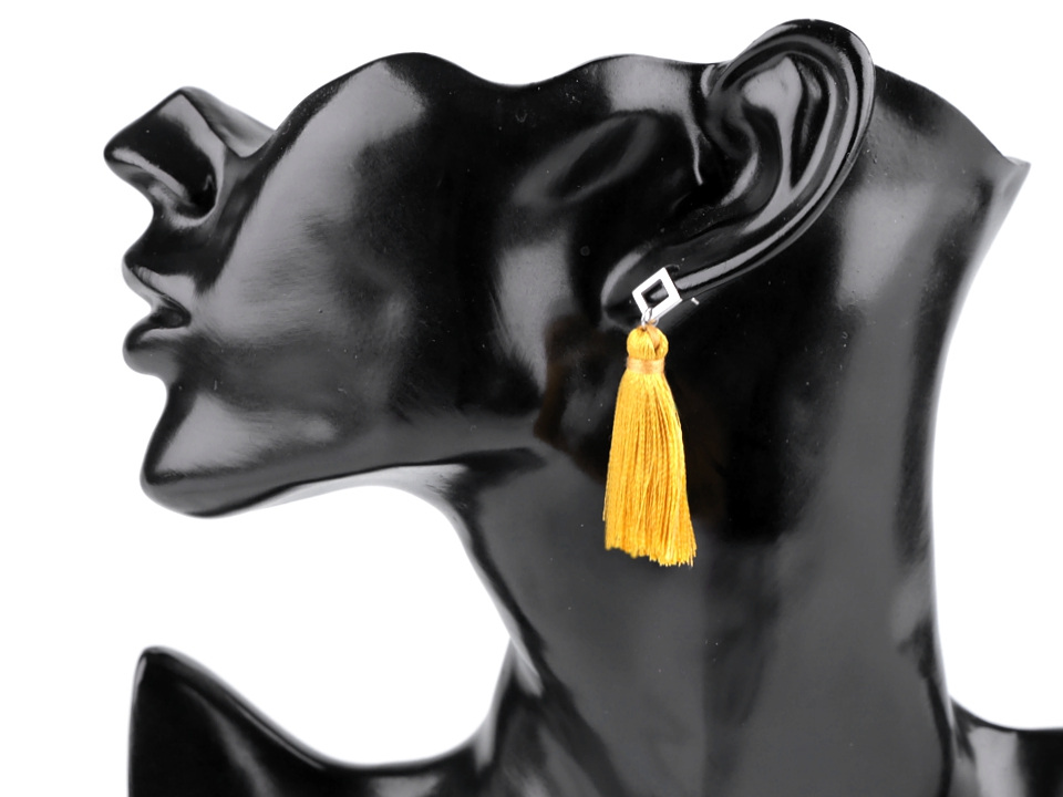 Extravagantní náušnice s dlouhým střapcem upoutají na první pohled.