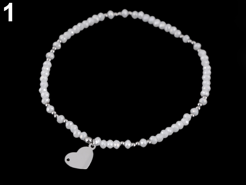 Náramek s broušenými korálky z nerezové oceli  - srdce - 1 bílá