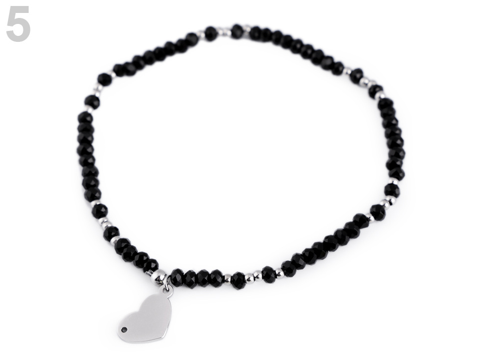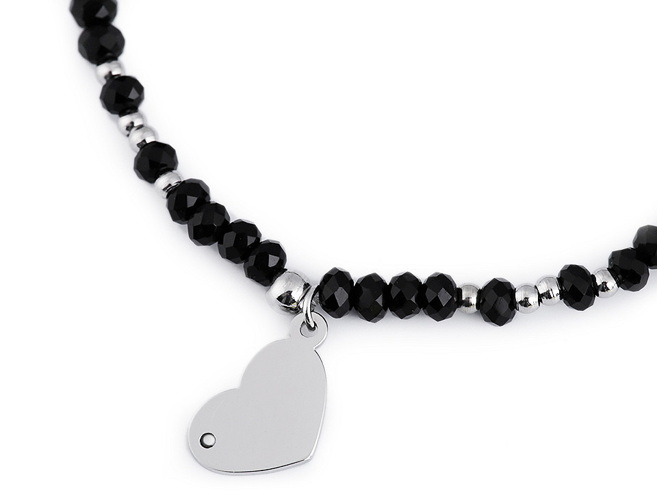 Náramek s broušenými korálky z nerezové oceli  - srdce - 5 černá