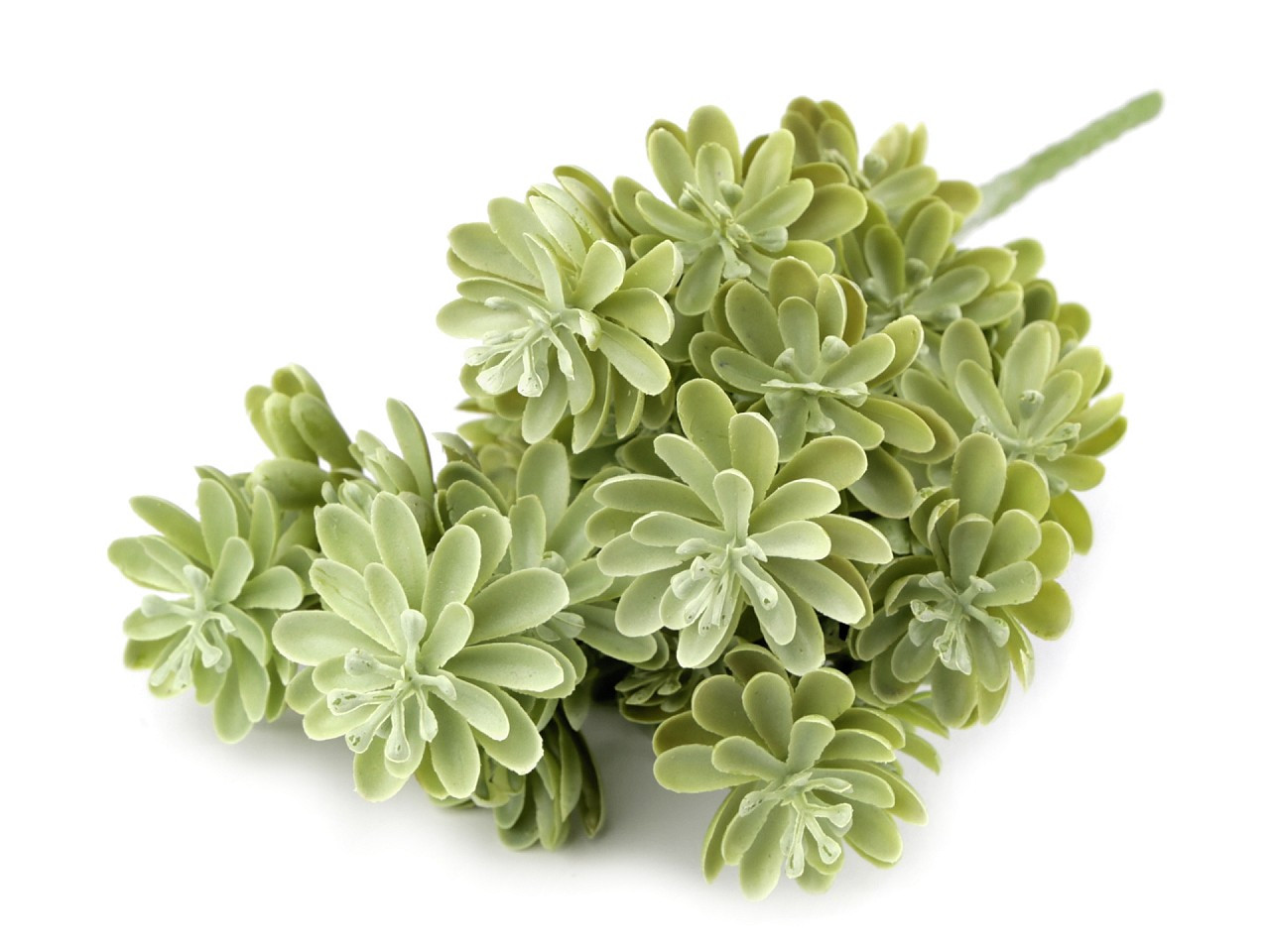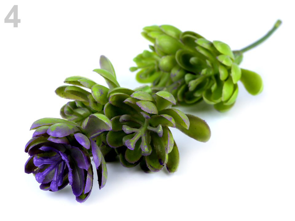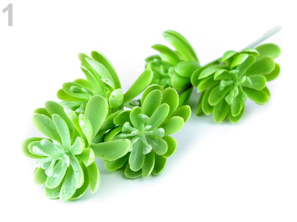 Umělý sukulent věrohodně napodobuje svou živou předlohu. Ve stonku je zakomponovaný drát, můžete jej tvarovat.