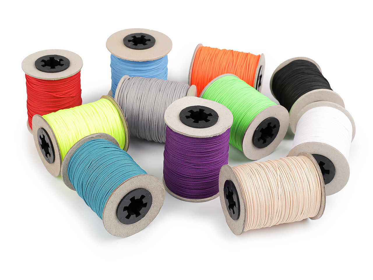 Šňůra české výroby o průměru 1,5 mm je vhodná na výrobu drhaných šperků či závěsných šňůrek např. na mobil. Lze ji využít také v textilním průmyslu např. do tunýlků bund, tepláků, atd. Vybrat si můžete z několika neonových barev.