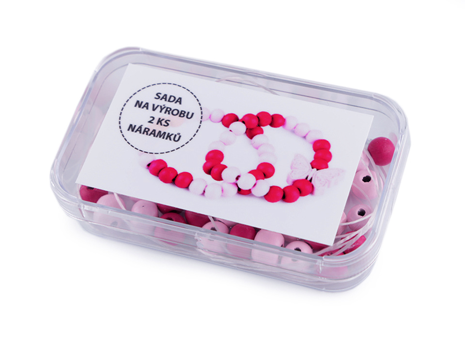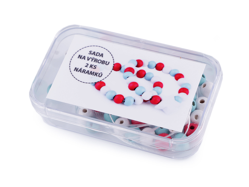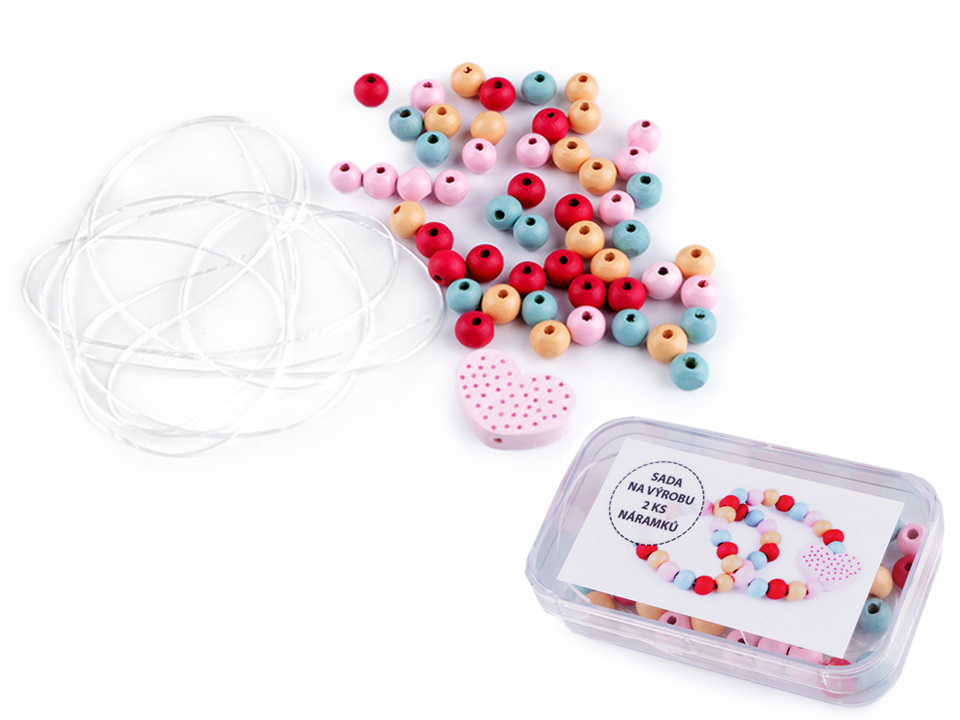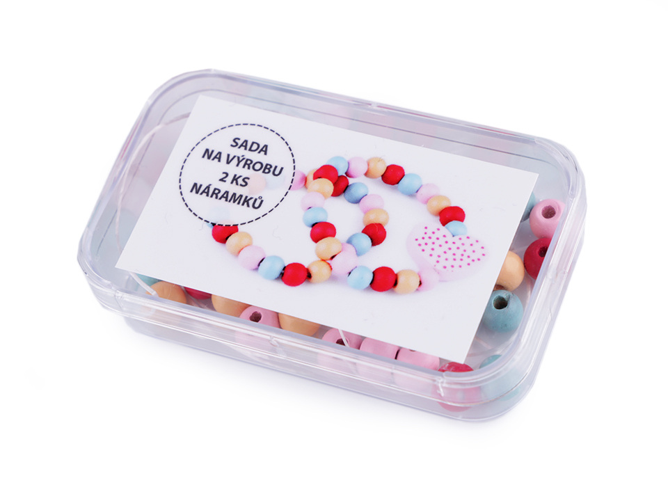 Kreativní sada na výrobu 2 pružných dřevěných náramků nadchne především děti. Náramky mohou nosit sami nebo jeden darovat své kamarádce, tzv. BFF náramky (best friends forever). Všechny potřebné díly jsou součástí sady. Sada je zabalená v pevné průhledné krabičce s víčkem.