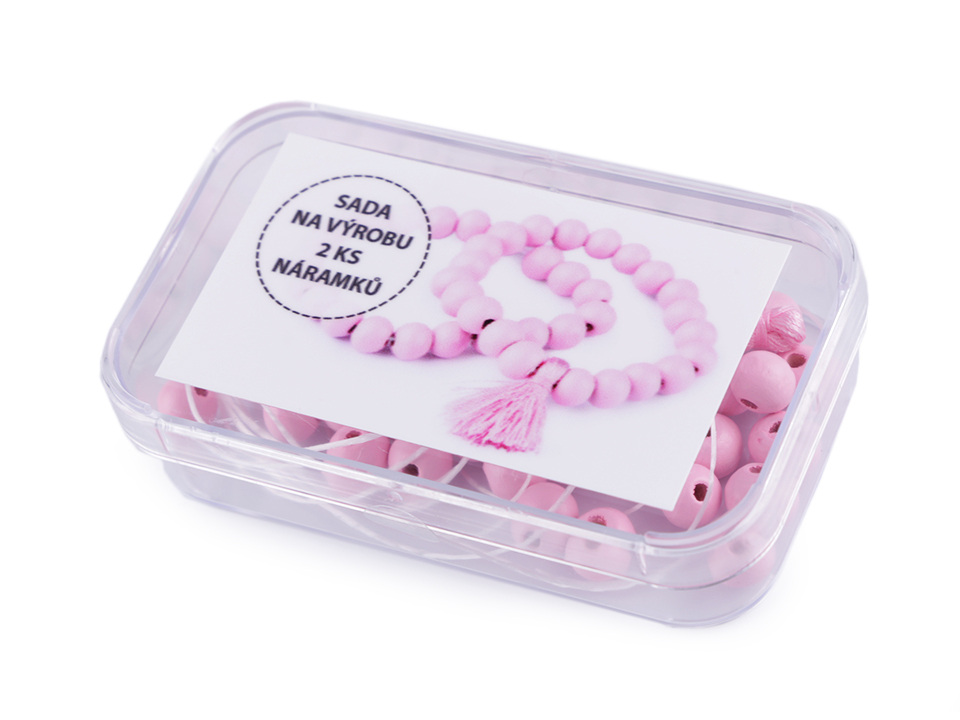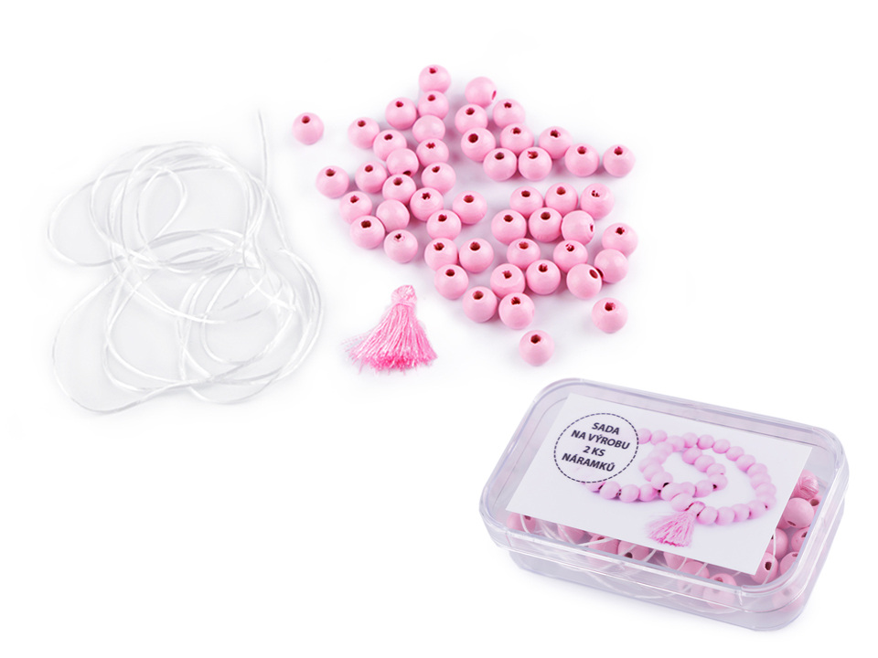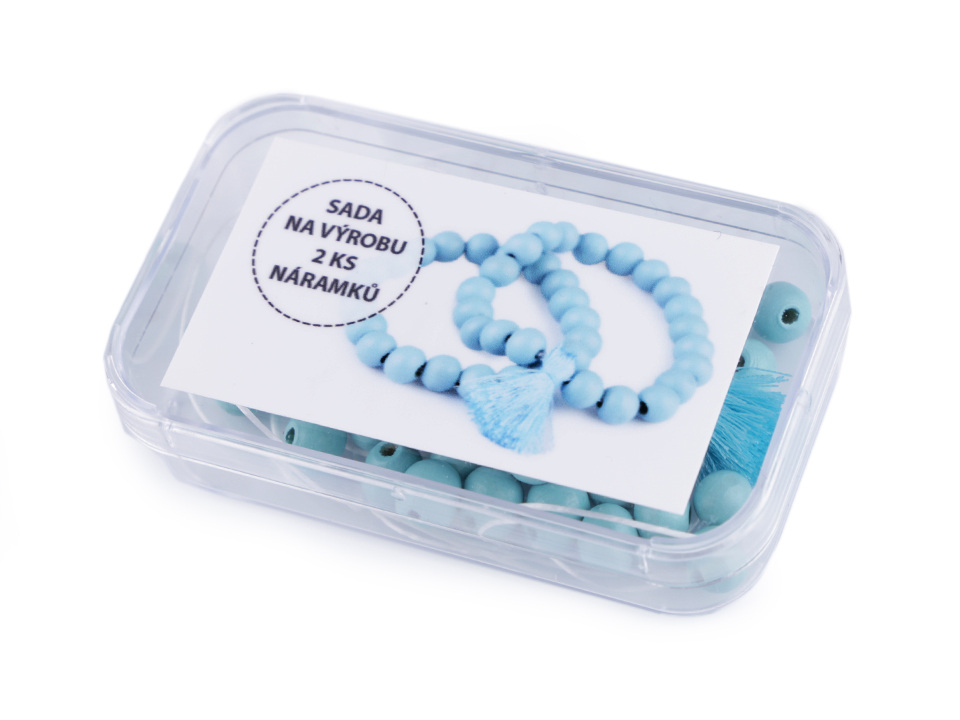 Kreativní sada na výrobu 2 pružných dřevěných náramků nadchne hlavně děti. Mají příjemný boho design se střapečkem. Náramky můžou nosit samy nebo je darovat. Všechny potřebné díly jsou součástí sady. Sada je zabalená v pevné průhledné krabičce s víčkem.