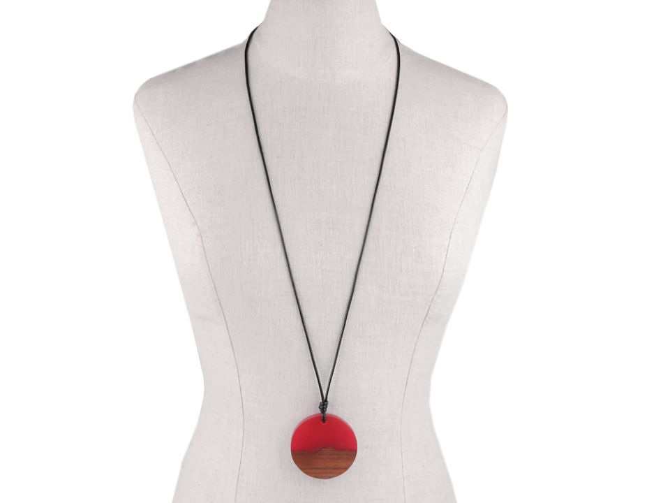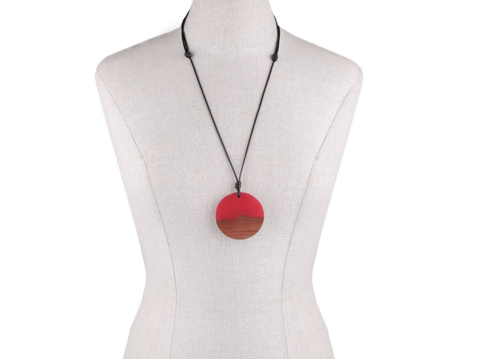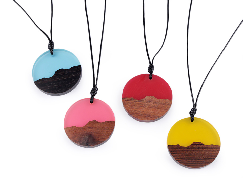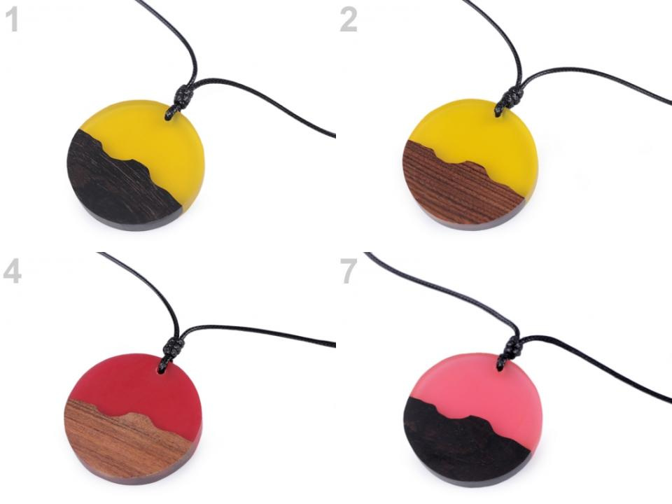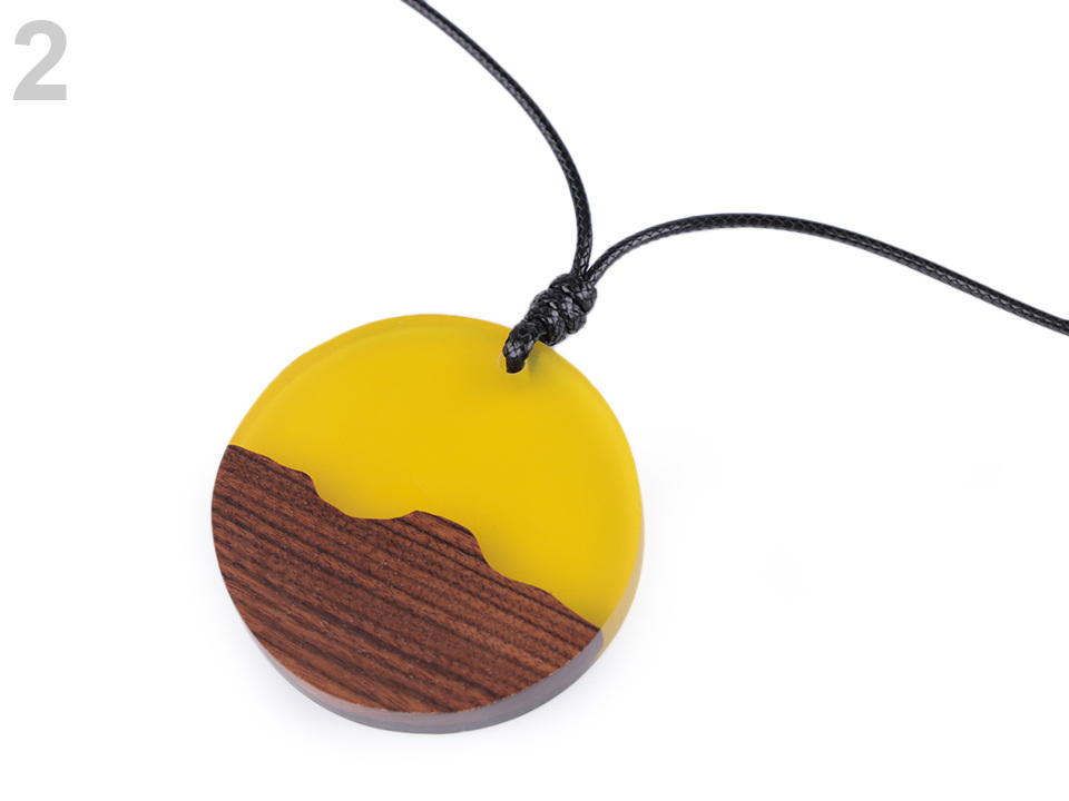 Výrazný přírodní náhrdelník ocení milovníci designových kousků. Zaujme velkým originálním přívěskem z pryskyřice a dřeva. Náhrdelník nemá zapínání, díky posuvným uzlíkům si můžete jeho délku lehce upravit.