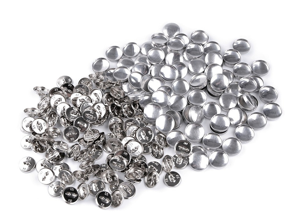 Celokovový knoflík využijete na potahování. K potažení můžete zvolit různé materiály.
