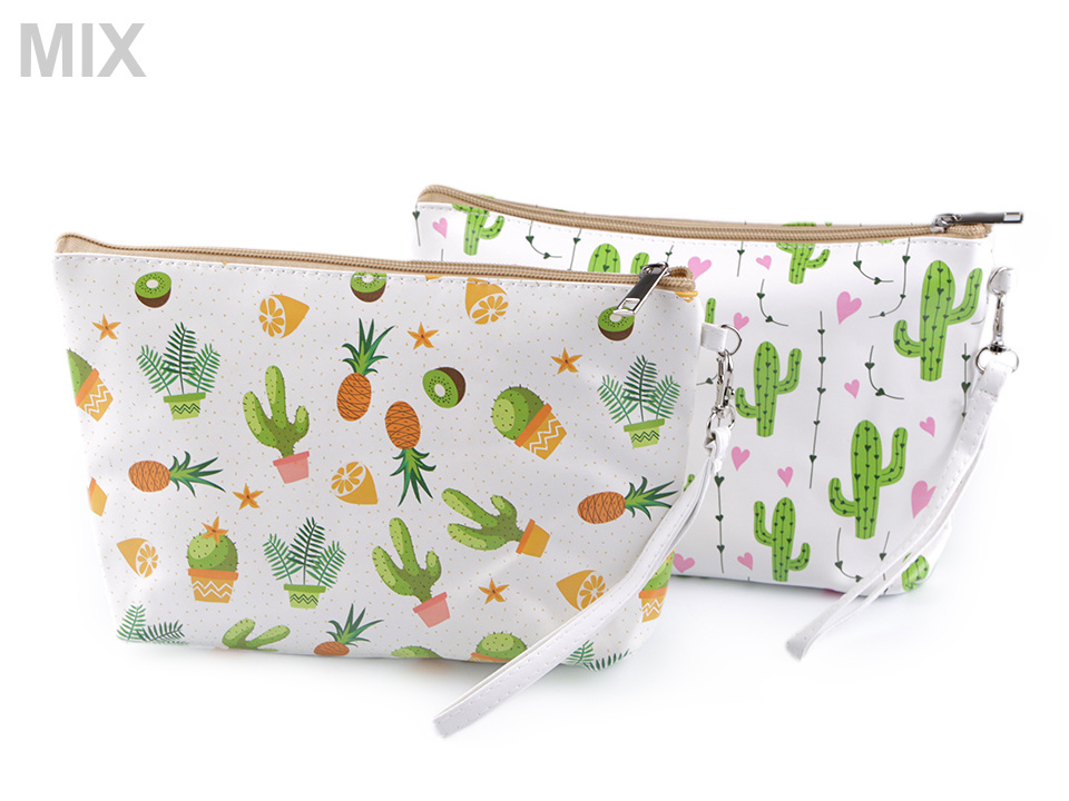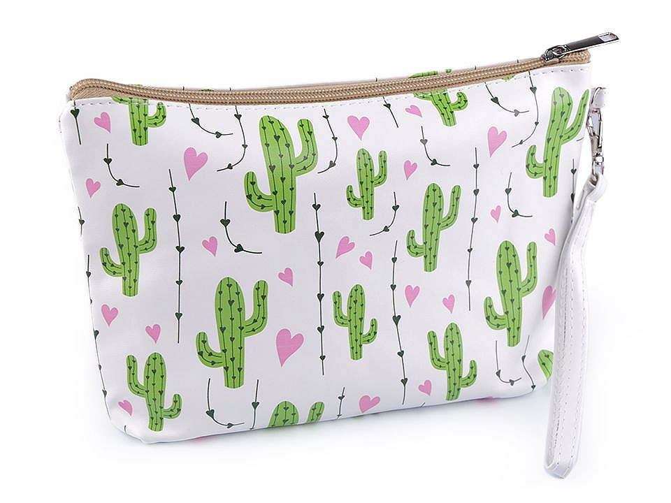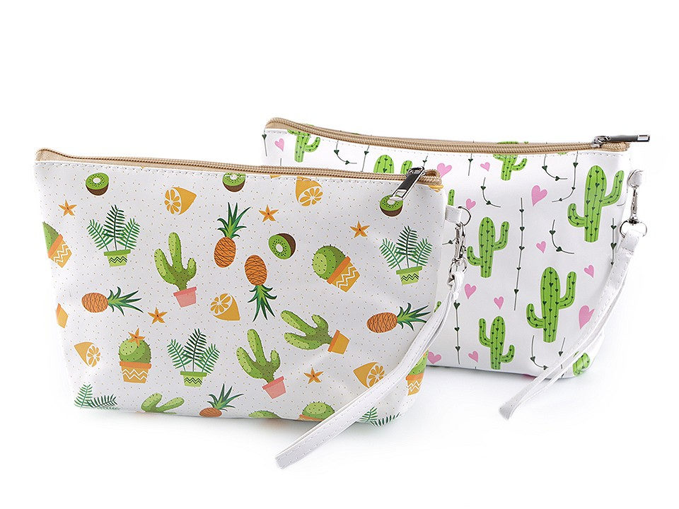 Kosmetická taška se svěžím potiskem kaktusů je dostatečně prostorná, vejde se do ní vše potřebné, ať už se jedná o kosmetiku či hřebeny. Je vhodná i jako pouzdro k úschově brýlí, mobilů, psacích pomůcek apod.