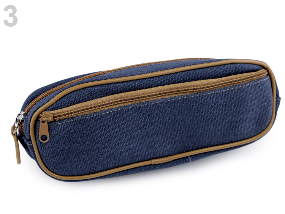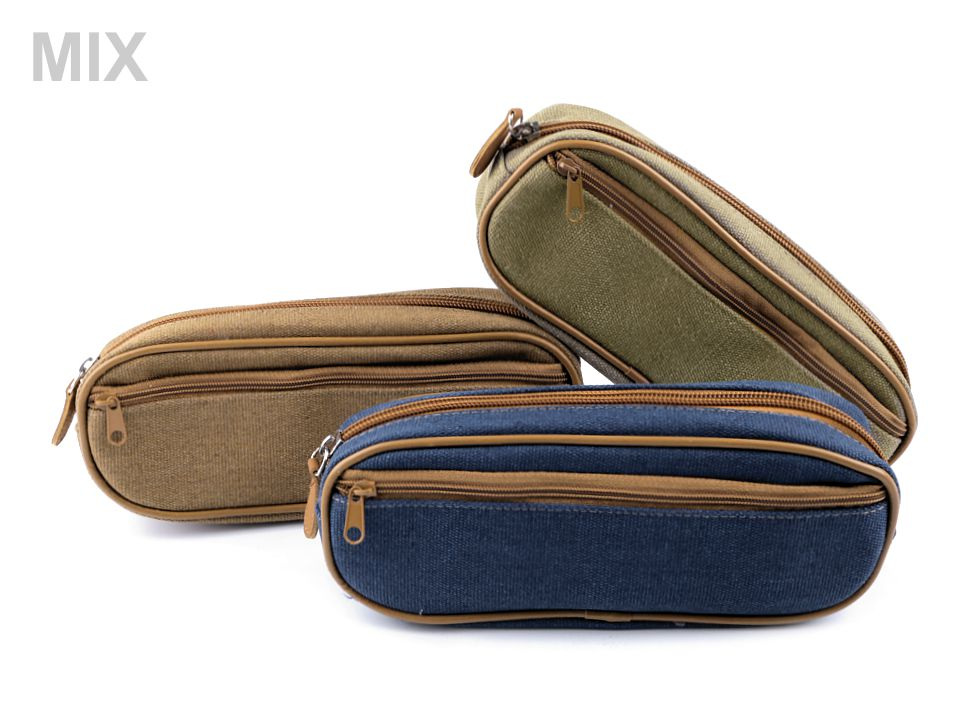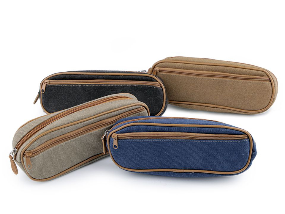 Bavlněné pouzdro riflového vzhledu bude skvělým společníkem nejen školáků a studentů. Má jednoduchý, ale praktický design. Kromě velké kapsy na zip, do které se vejdou psací potřeby, nůžky, mobilní telefon či kosmetika, je na vnější straně umístěna další kapsa na zip, kterou lze využít na různé drobnosti.