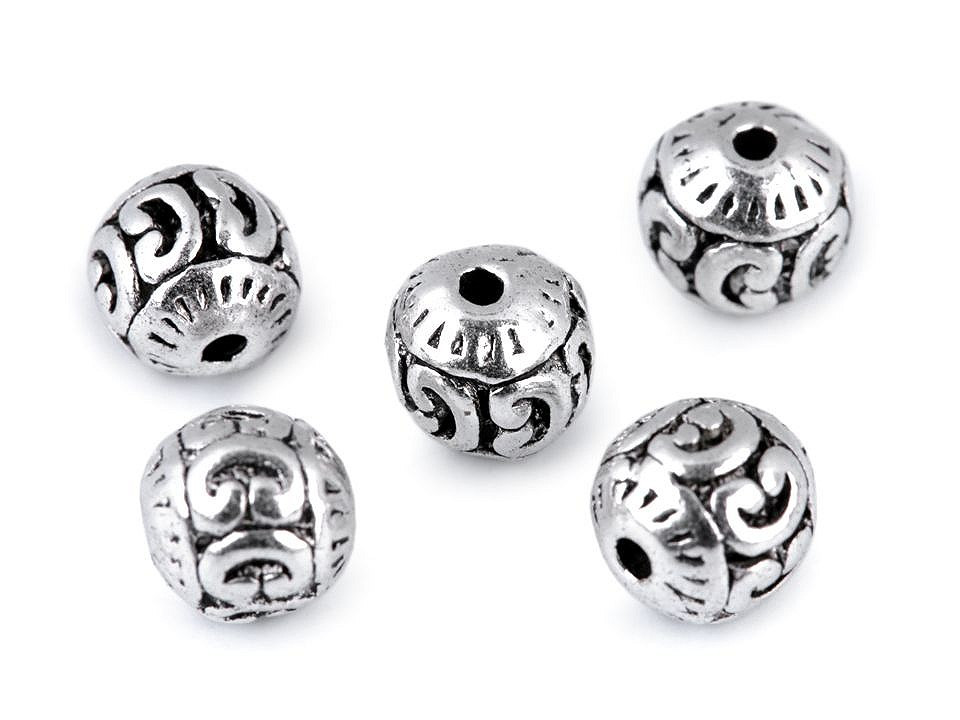 Kulatý kovový korálek s ornamenty můžete využít jako zajímavý a oživující prvek.