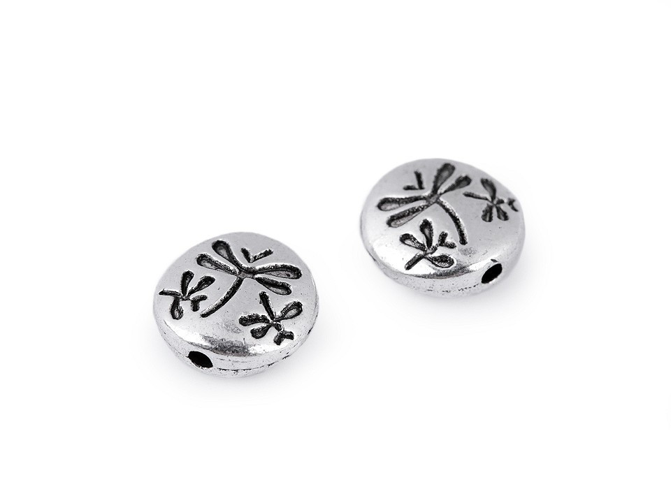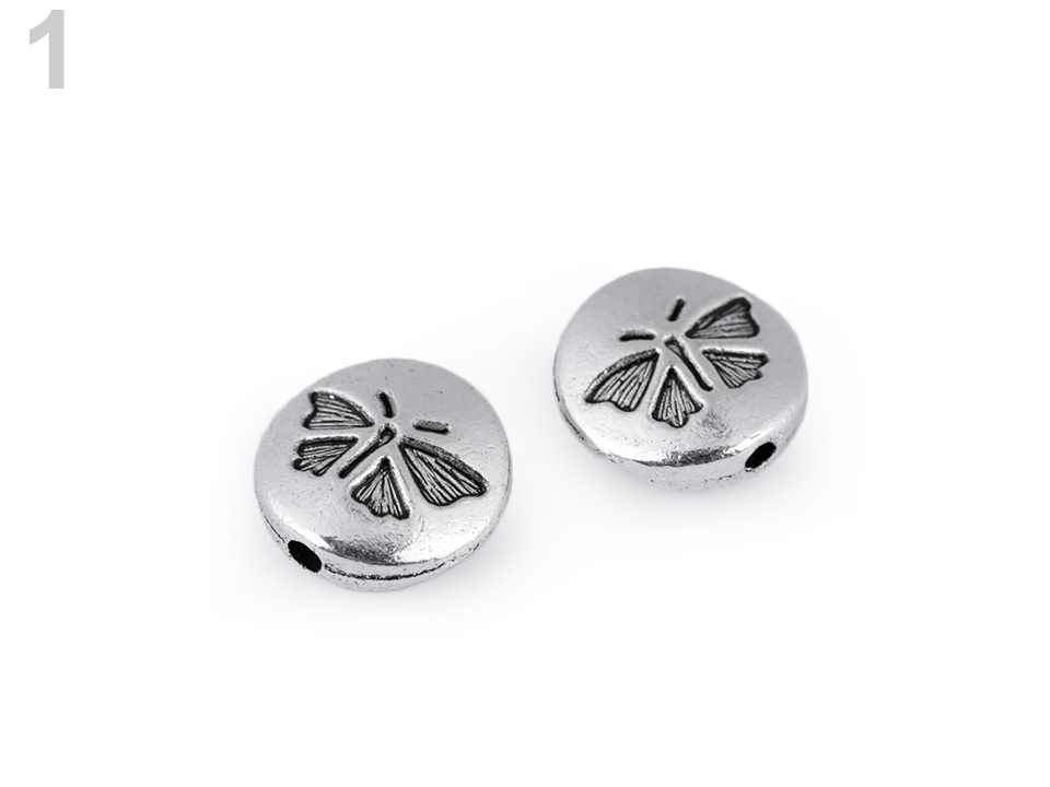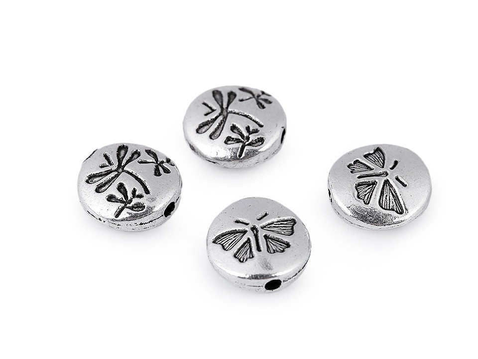Kovový korálek s motivem motýla nebo vážky můžete využít jako zajímavý a oživující prvek. Je oboustranný.