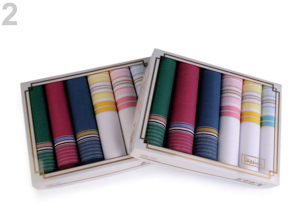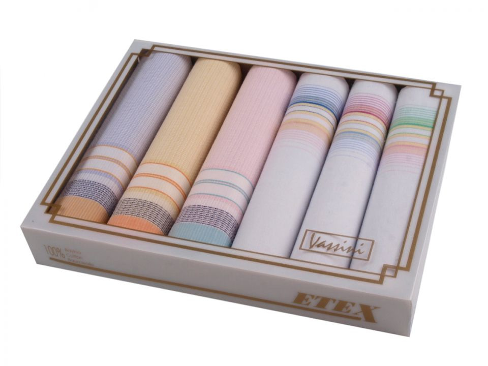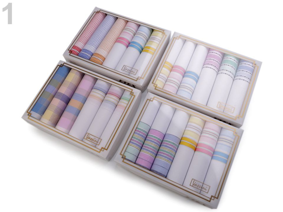 Dámské bavlněné kapesníky o rozměru 29 x 30 cm Vám nabízíme v dárkové balení po 6 kusech.