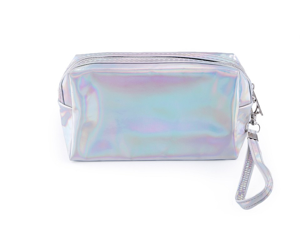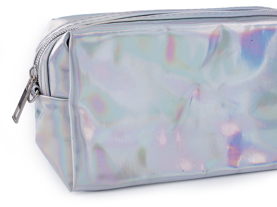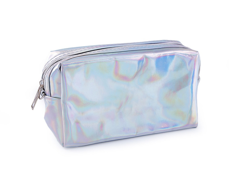 Moderní holografické pouzdro stříbrné barvy vám udělá radost všude, kam s ním půjdete. Je dostatečně prostorné, vejde se do něj vše potřebné např. mobil, psací potřeby, brýle apod. Můžete jej použít i na kosmetiku, hřebeny apod., uvnitř má podšívku. Je tvarovatelné, lze jej lehce složit. Zapíná se na zip, uvnitř má podšívku. Je vybavené i poutkem s odepínací karabinou.
