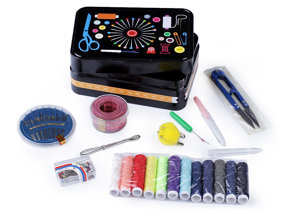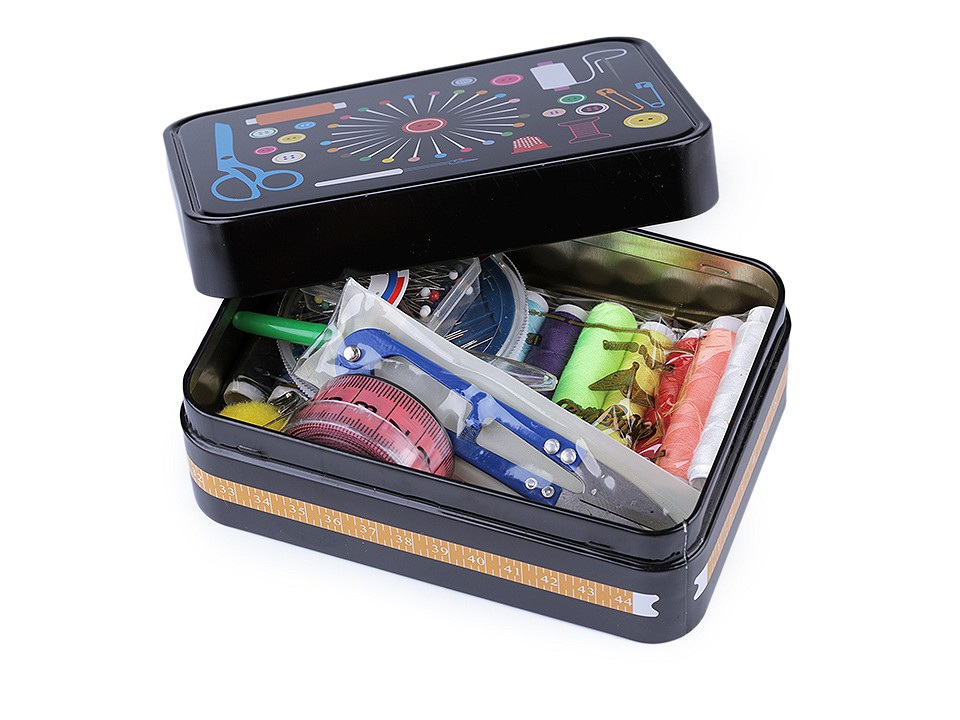 Šitíčko ve stylové plechové krabičce s krejčovským designem ocení každá švadlenka.