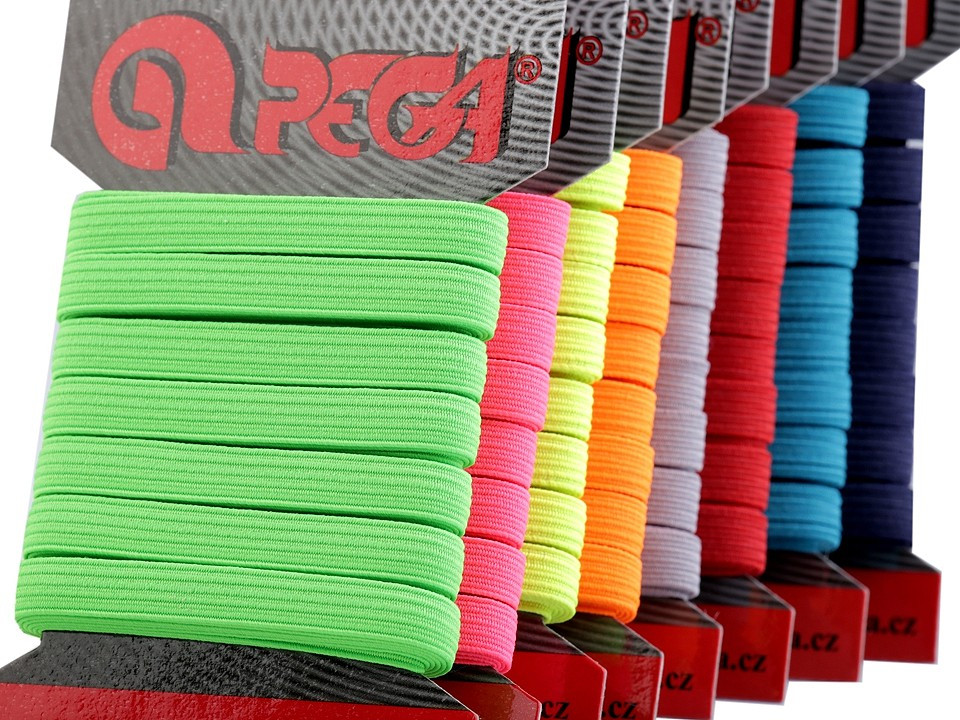 Kvalitní český produkt. Pruženka prádlová, šíře 7 mm, na jedné kartě je navinuto 5 m. Nabízené barvy mají neonové odstíny.