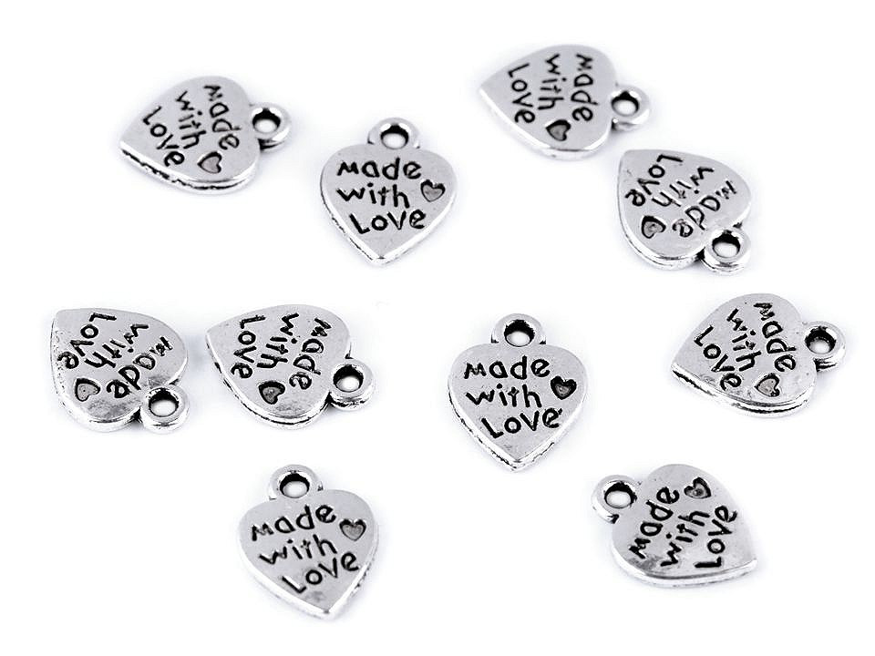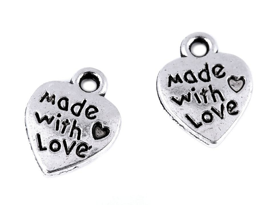Kovový přívěsek s nápisem Made with love má široké použití. Hodí se pro označení všech výrobků, které vznikly ručně. Ať už jsou to ručně vyrobené oděvy, dekorace, pletené a háčkované výrobky nebo třeba scrapbookingová alba. Přívěsek bude tou pravou tečkou pro označení vaší práce.