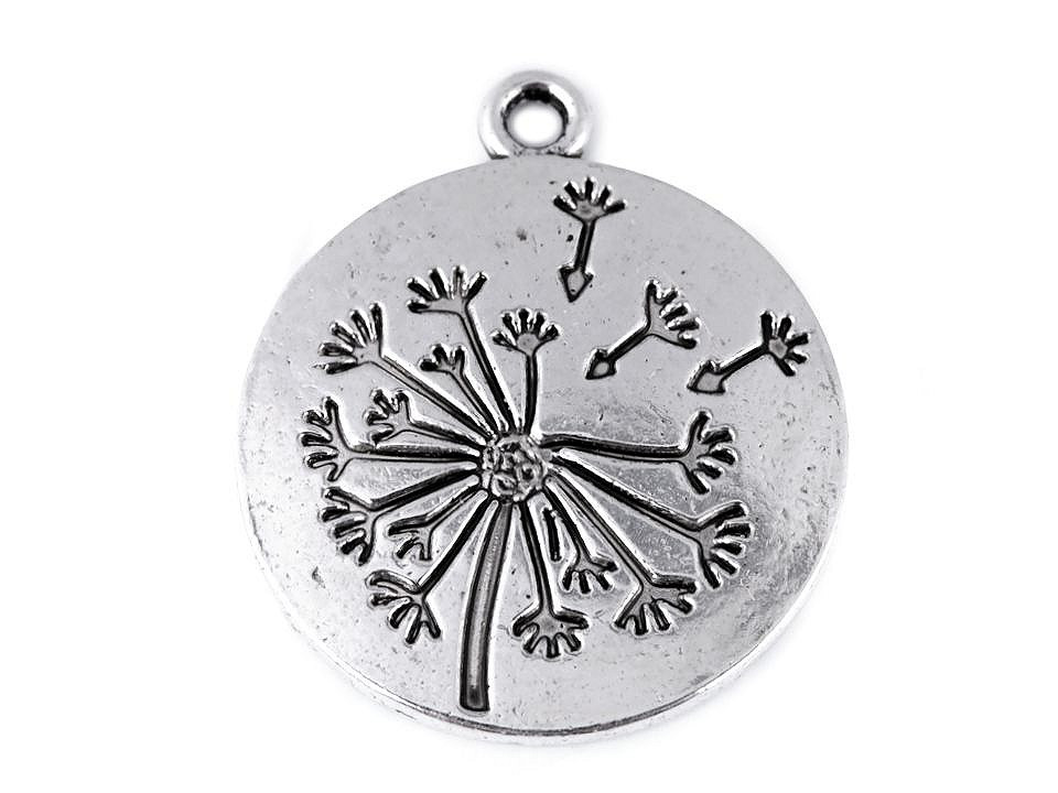 Přívěsek s pampeliškou ve tvaru placičky má mnohostranné využití. Je jednostranný.