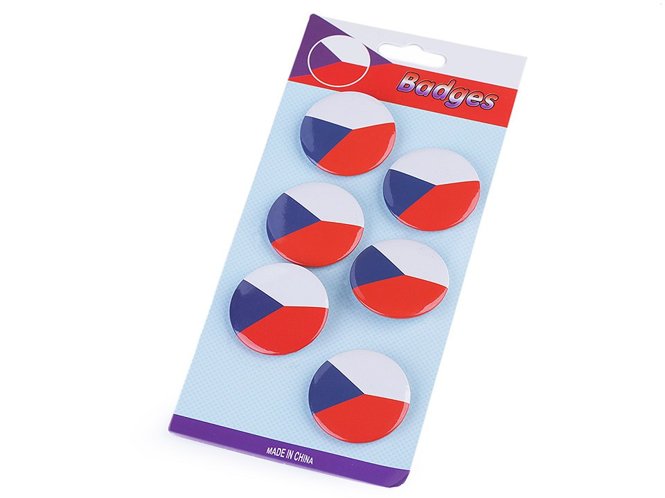 Placku zdobí česká vlajka. Je vhodným doplňkem na hokej, fotbal a různé významné dny. Hodí se i jako suvenýr či upomínkový předmět z cest po České republice. Placka má na zadní straně zavírací špendlík.