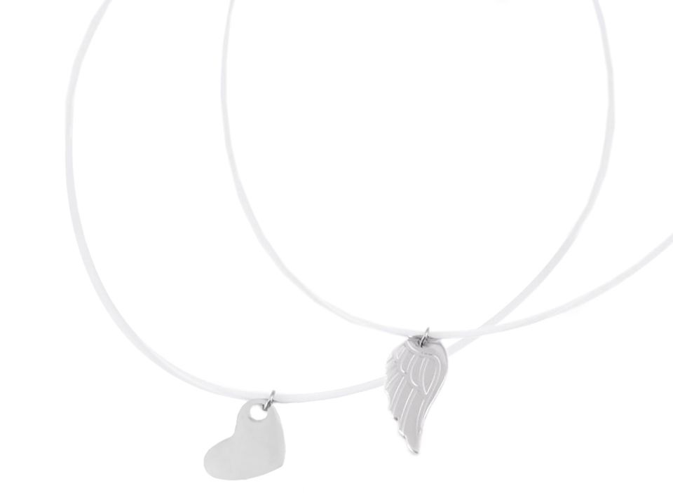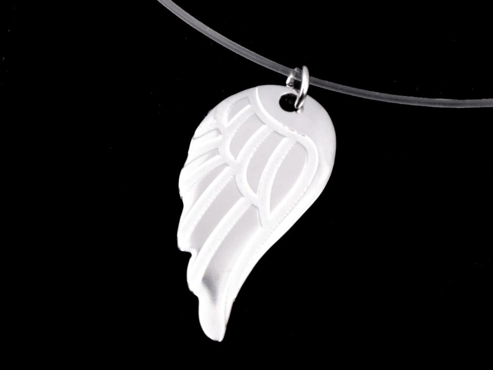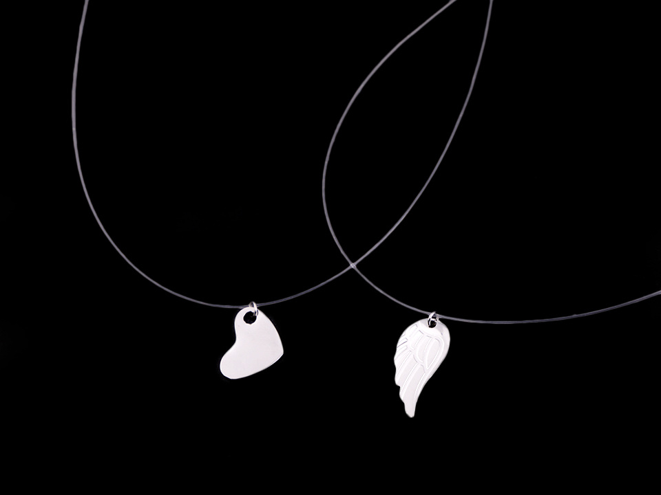 Přívěsek č.1 - křídlo má jemný relíéf peříček, přívěsek č.2 - srdce je hladké, má vysoký zrcadlový lesk.
