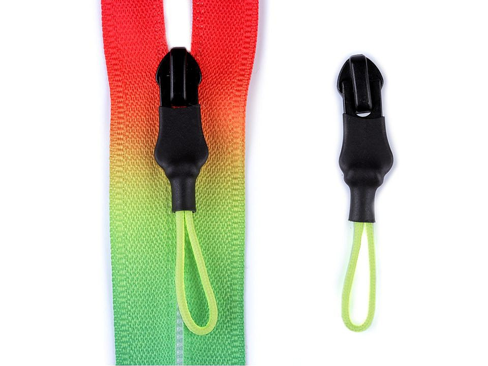 Kovový jezdec je určený ke spirálovým zipům v metráži s šířkou 5 mm, které najdete pod kódem 790303. Díky delšímu poutku se s ním dobře manipuluje.