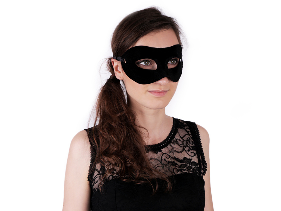 Karnevalová škraboška je z pevnějšího plastu, povrch je potažený semišem. Jedná se o polotovar, který můžete dále zdobit, například kamínky, umělými květy, stuhou apod. Maska se zavazuje pomocí saténové stuhy.