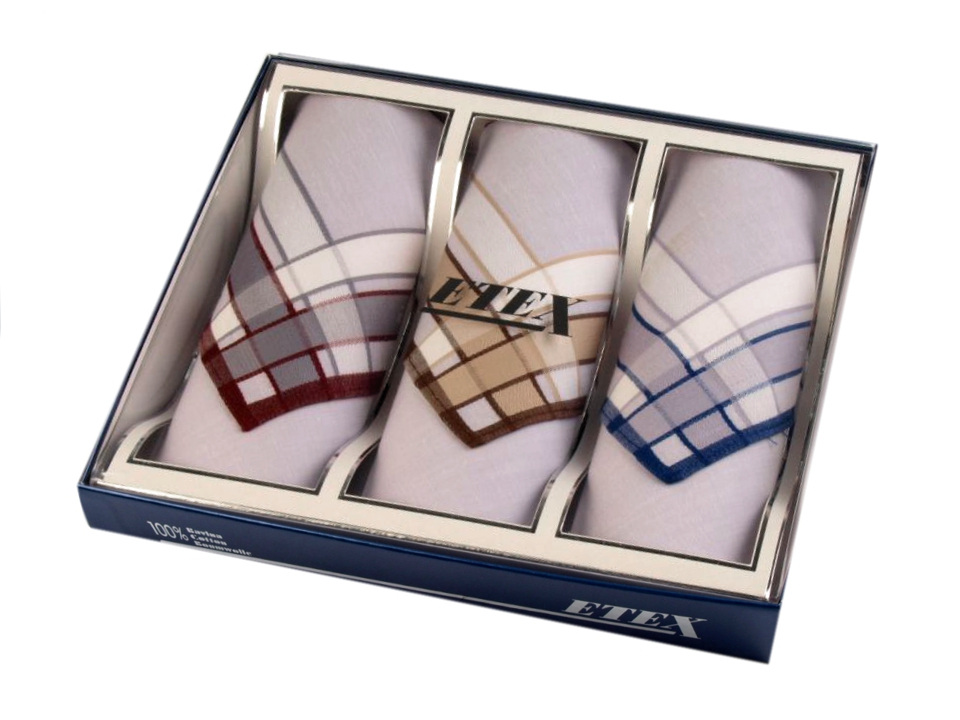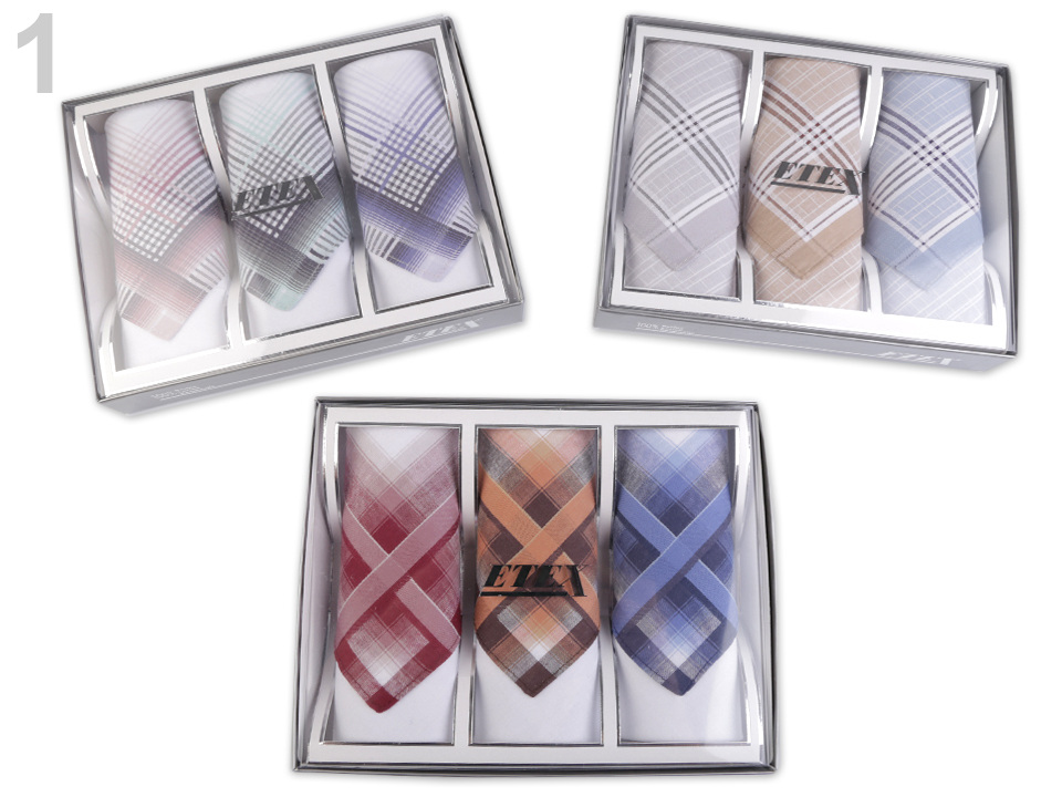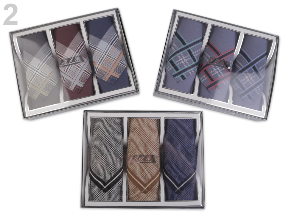 Kvalitní bavlněné kapesníky s károvaným dezénem. Díky elegantní krabičce můžete použít jako vkusný dárek pro muže. V jednom balení se nachází 3 ks kapesníků čtvercového tvaru o rozměrech 42 x 42 cm.