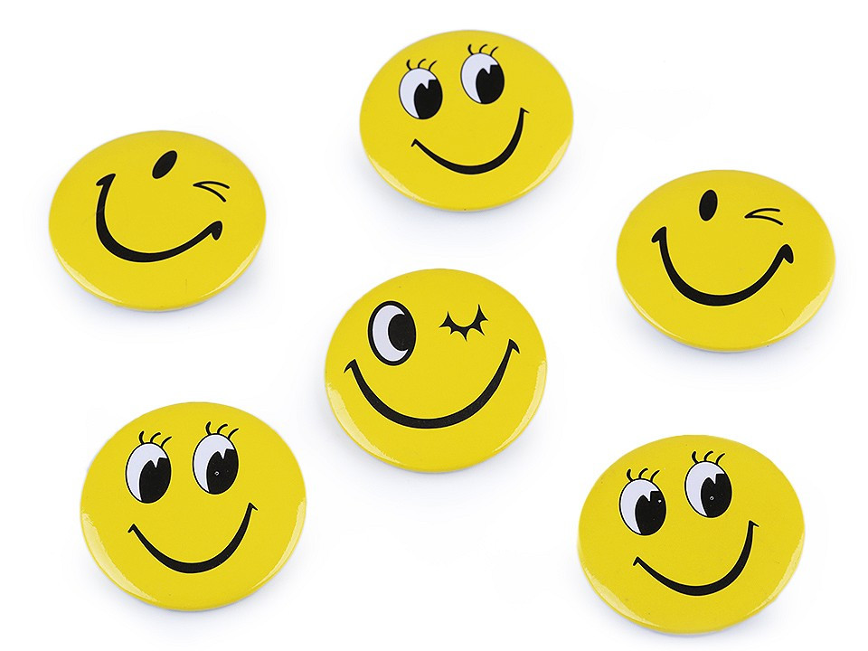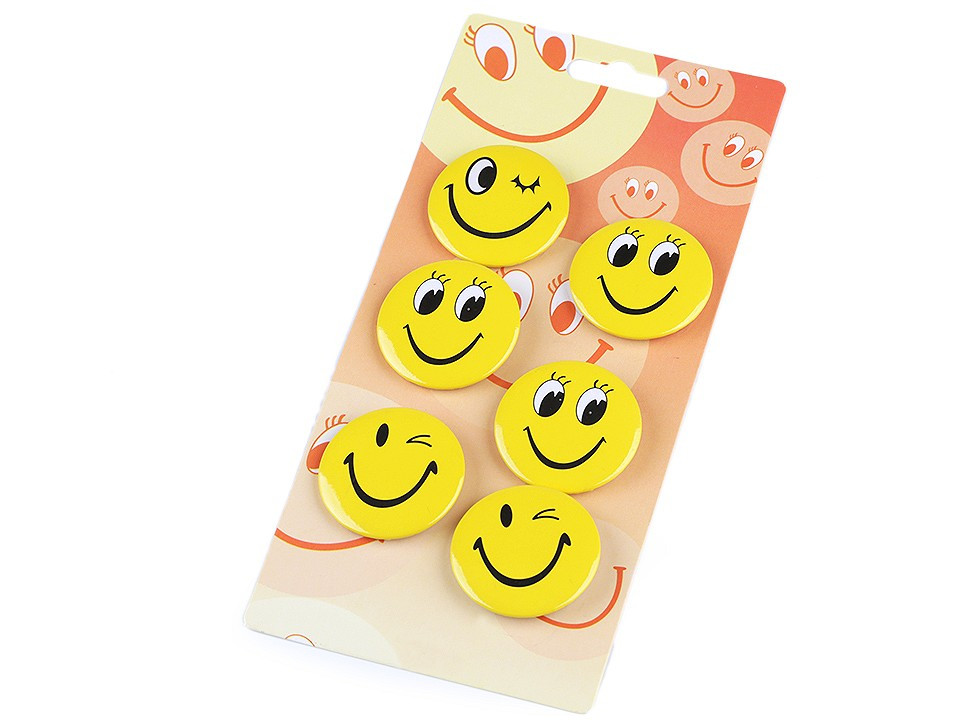 Placky s veselým motivem smajlíků oživí dětský batoh, tašku či aktovku. Skvěle se hodí na ozvláštnění outfitu. Placky využijete také jako párty doplněk např. pro odlišení týmů.Na zadní straně je zavírací špendlík.