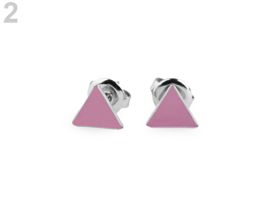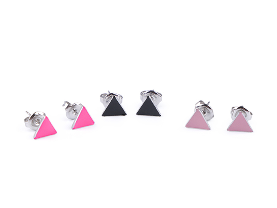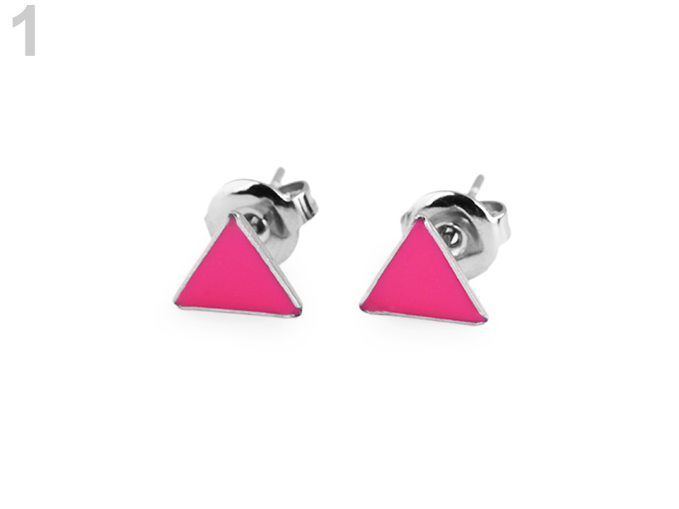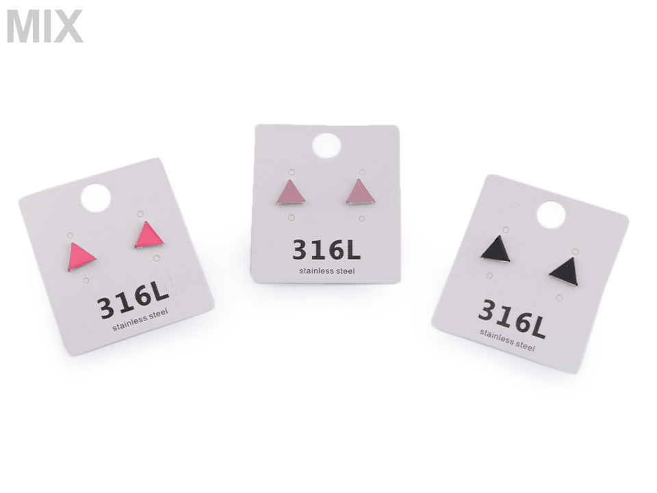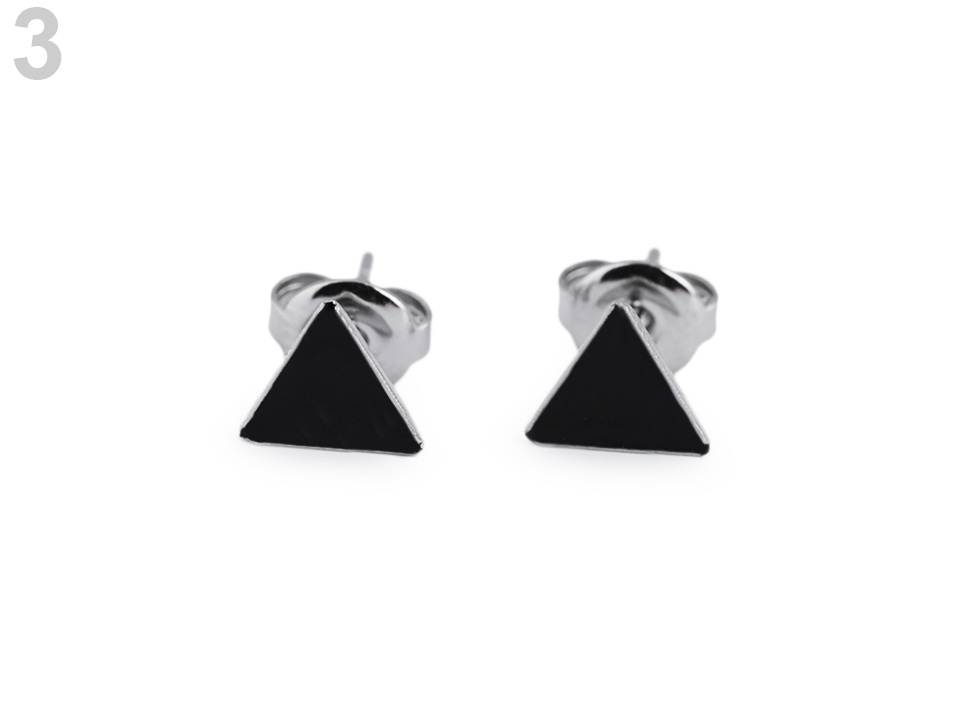 Smaltované náušnice z nerezové oceli mají design trojúhelníku.