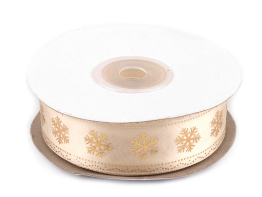 Saténová stuha s potiskem vloček působí velmi elegantně. Potisk je jednostranný a leskne se.