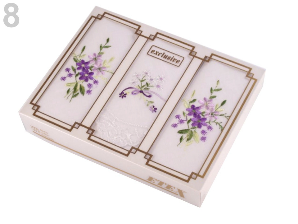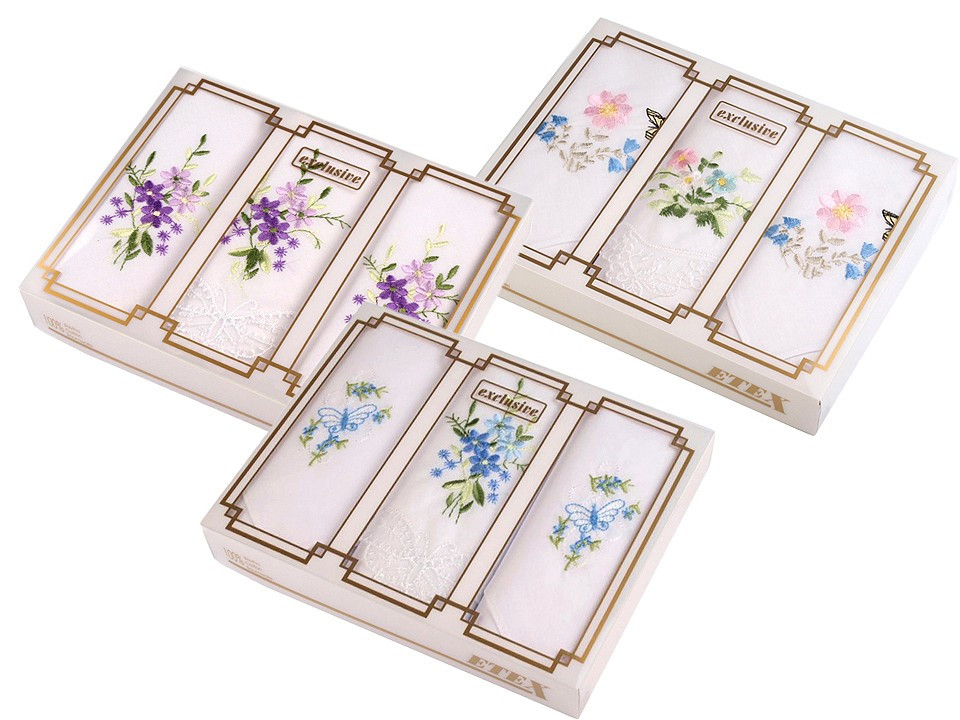Sada kvalitních bavlněných kapesníků s romantickou výšivkou s motivem květů. Posloužit mohou nejen při nachlazení, ale i jako dekorační kapesník. Ideální dárek pro všechny nostalgické duše.