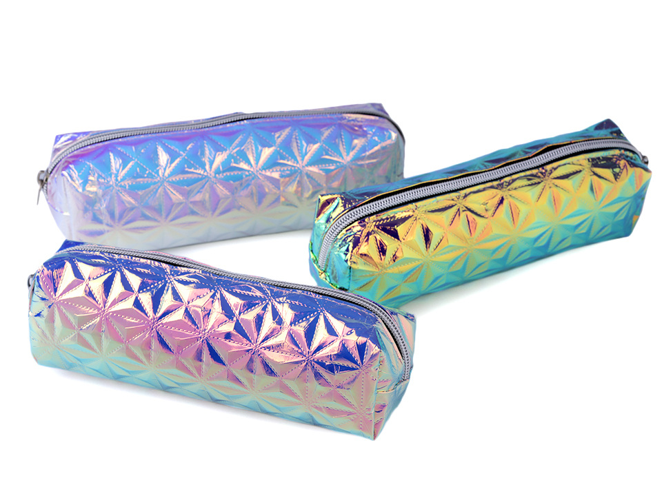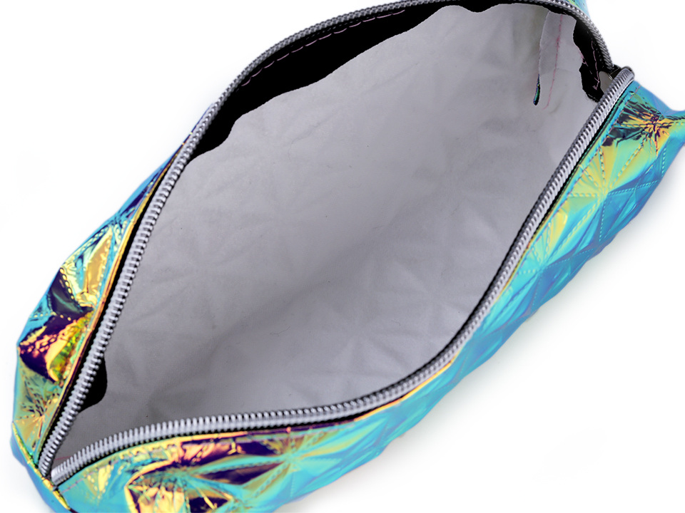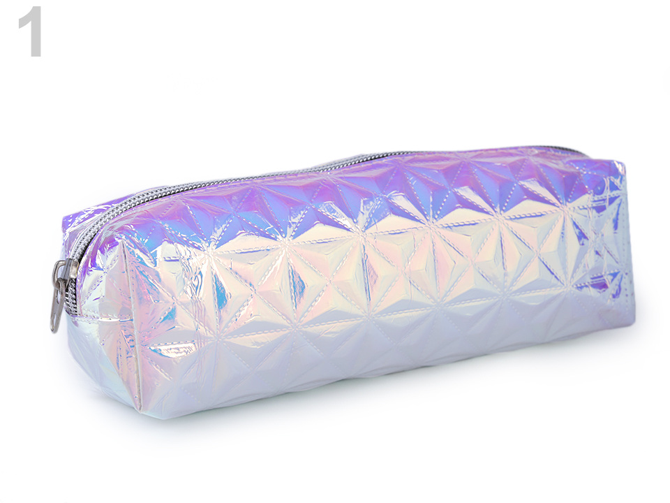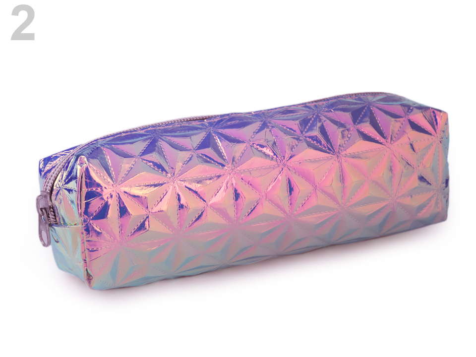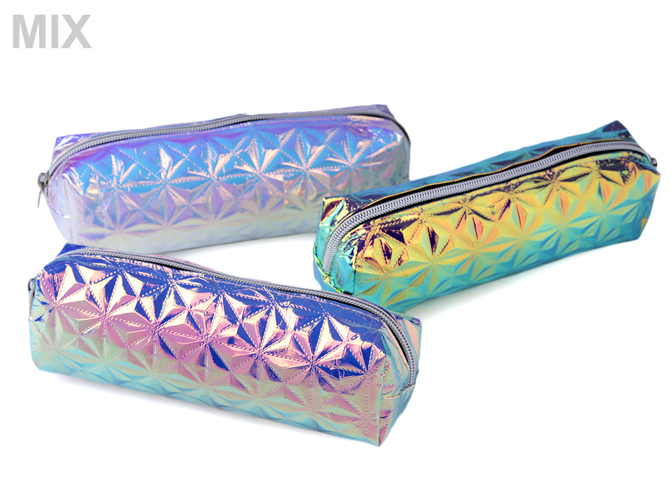 Moderní holografické pouzdro s pyramidovým reliéfem má zajímavé světelné odlesky. Je určené především na psací potřeby. Pohodlně se vejde do kabelky, může vám dělat společníka v práci či ve škole. Pouzdro můžete také použít na drobnou kosmetiku, hřebeny či manikurní nůžky. Zapíná se na zip.