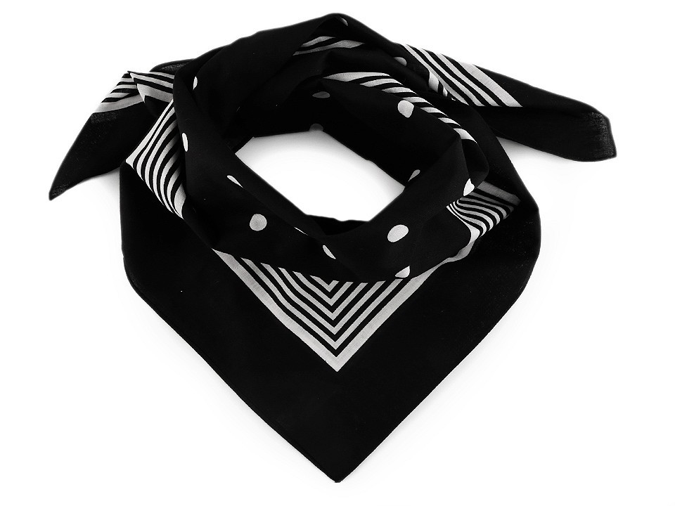 Bavlněný šátek s puntíky 70x70 cm - 2 černá