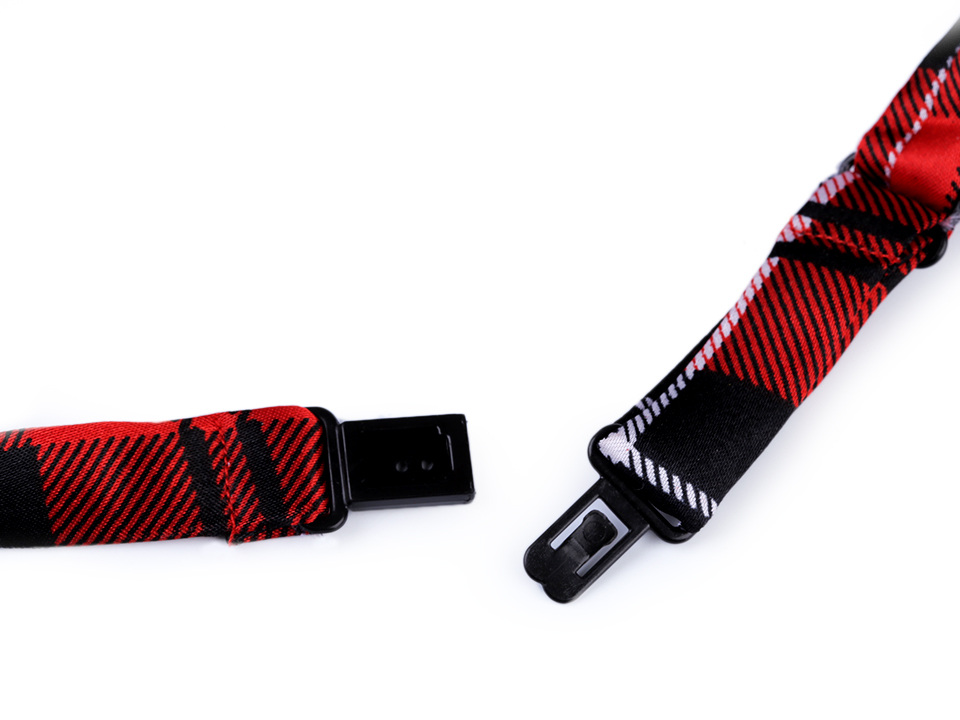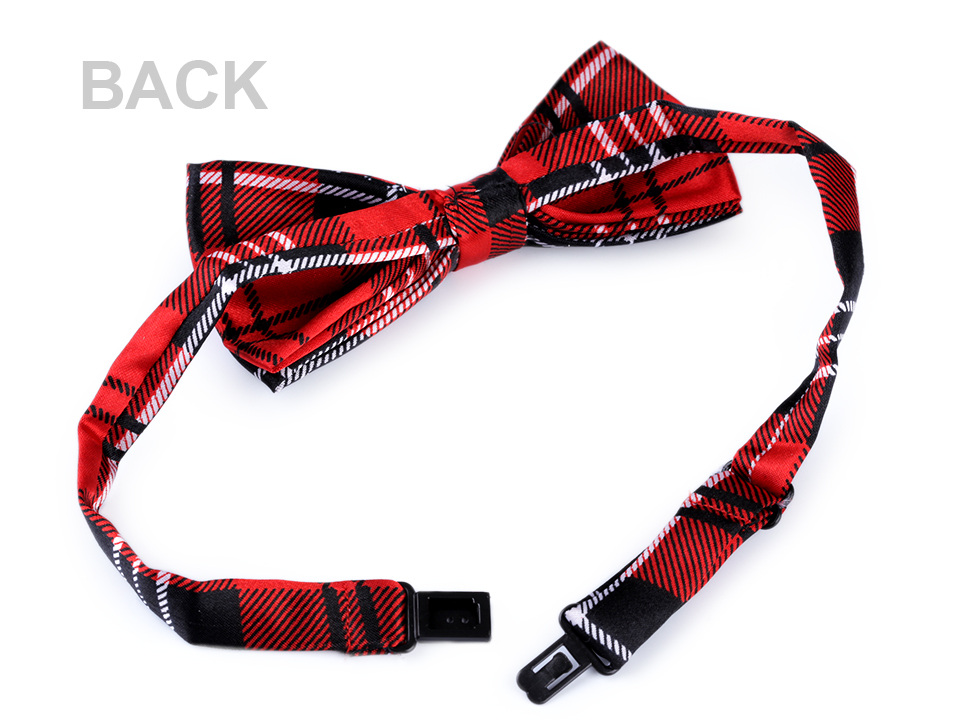 Nejdelší délka motýlka okolo krku je 47 cm. Tato délka se dá zkrátit na potřebnou velikost, aby motýlek přesně seděl. Zapínání je plastové.