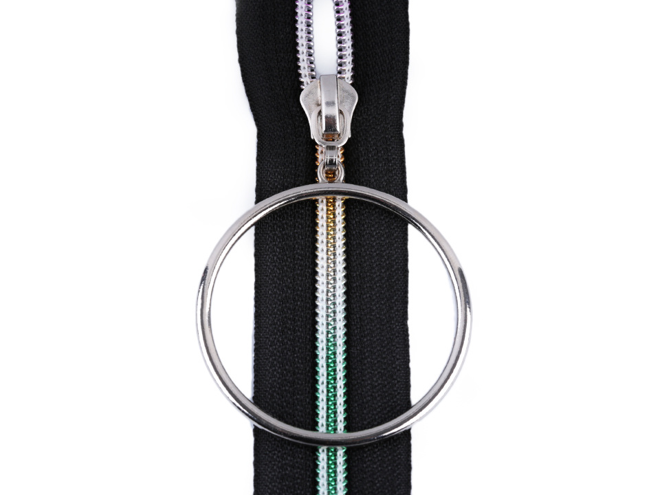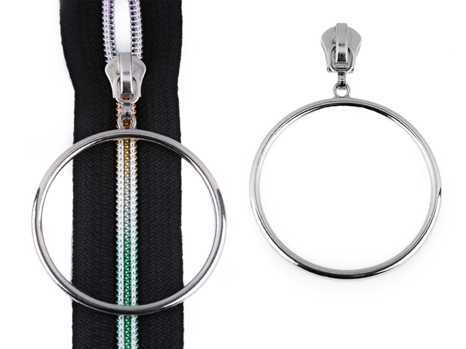 Kovový jezdec má efektní táhlo s velkým kroužkem. Je určený ke spirálovému zipu o šíři 5 mm v metráži, který u nás najdete pod kódem 750503. Vynikne na halenkách, mikinách, šatech i bundách.