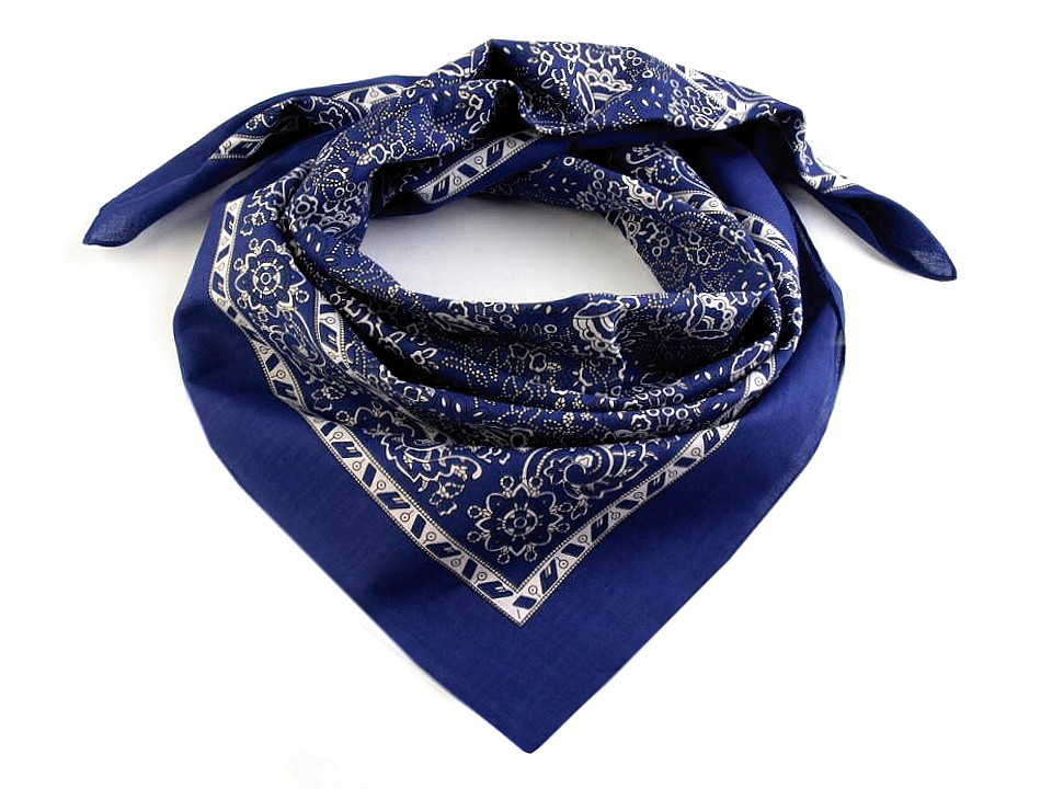 Bavlněný šátek kašmírový vzor 70x70 cm - 1 modrá berlínská