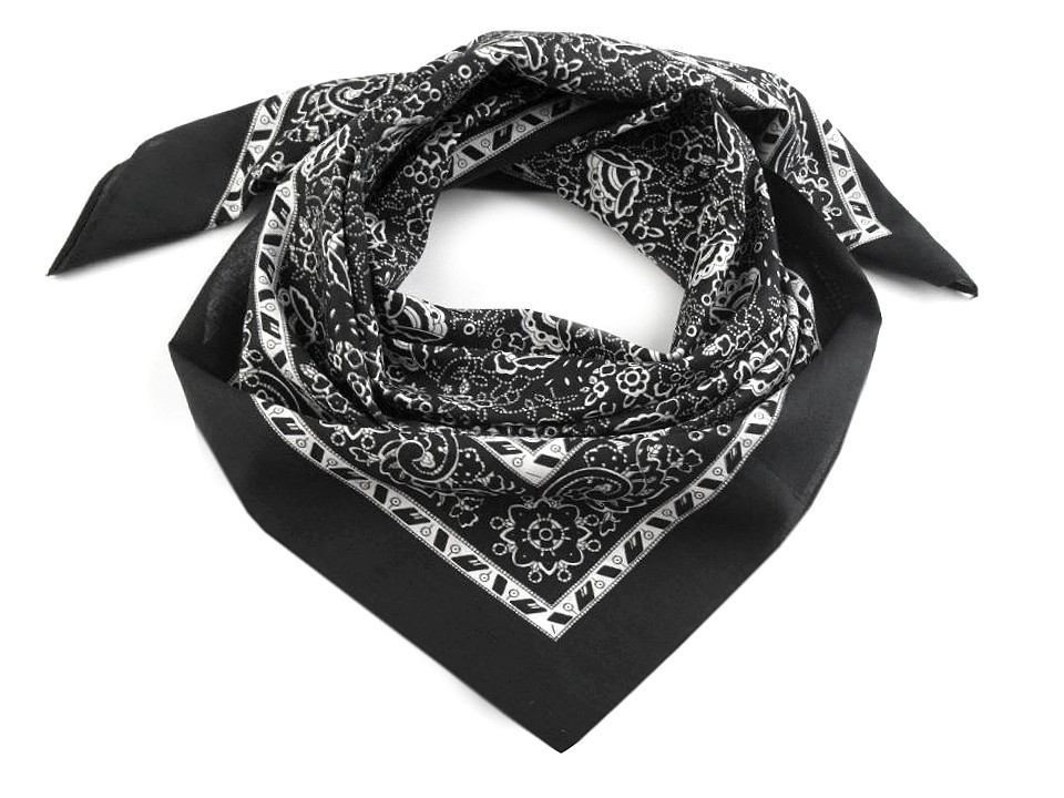 Bavlněný šátek kašmírový vzor 70x70 cm - 3 černá