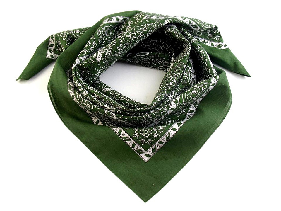 Bavlněný šátek kašmírový vzor 70x70 cm - 2 zelená smrková