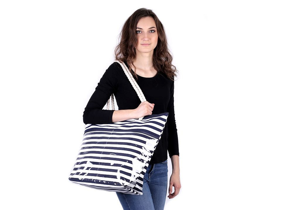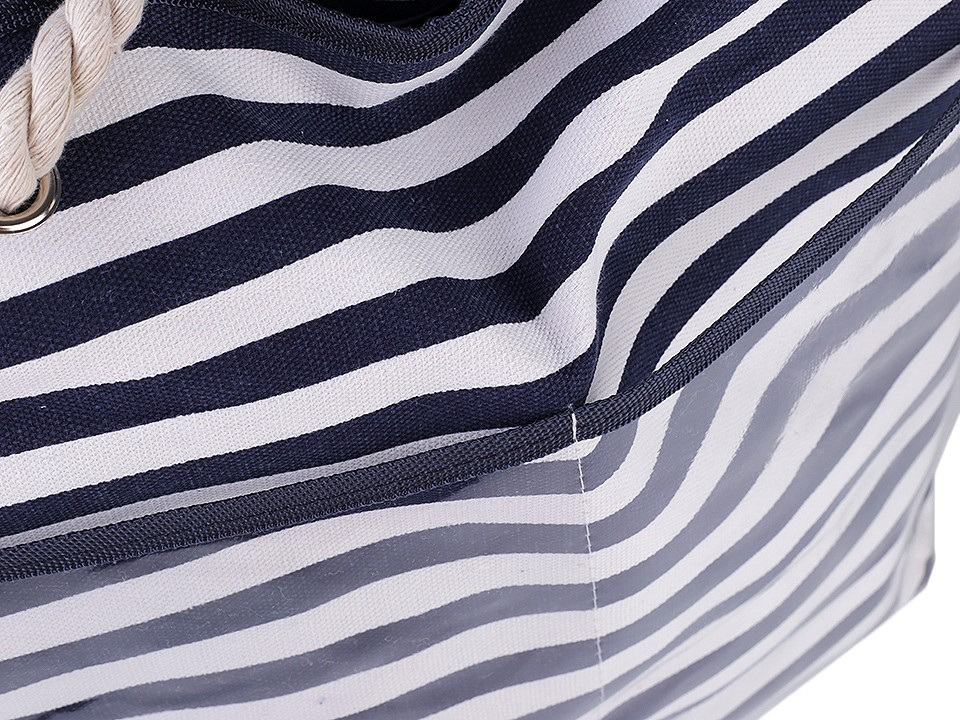 Se stylovou pruhovanou plážovou taškou se blýsknete na každé pláži! Taška je nejen skvělý módní doplněk, ale zároveň se dovnitř vejdou všechny důležité věci, které budete u vody potřebovat. Ideální nejen na pláž, ale také jako nákupní do obchodu .