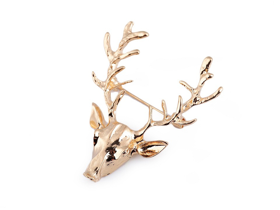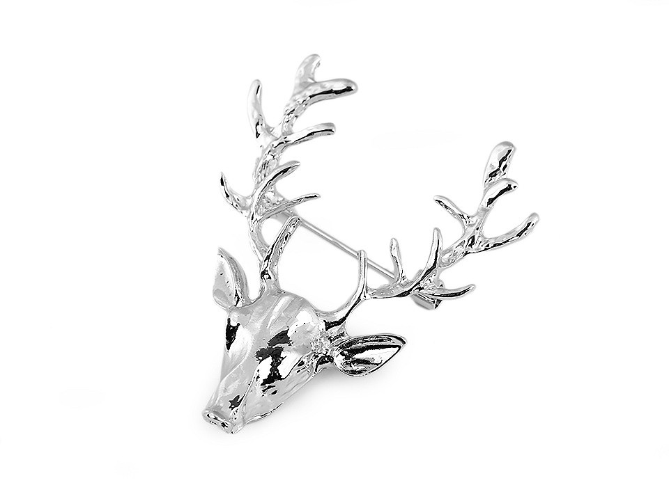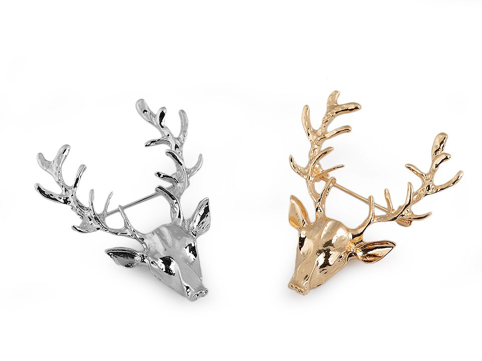 Unisex brož s jelení hlavou s velkými parohy nadchne nejen každého myslivce. Bude vypadat skvěle na klopě pánského saka i na dámském kabátě či svetru.
