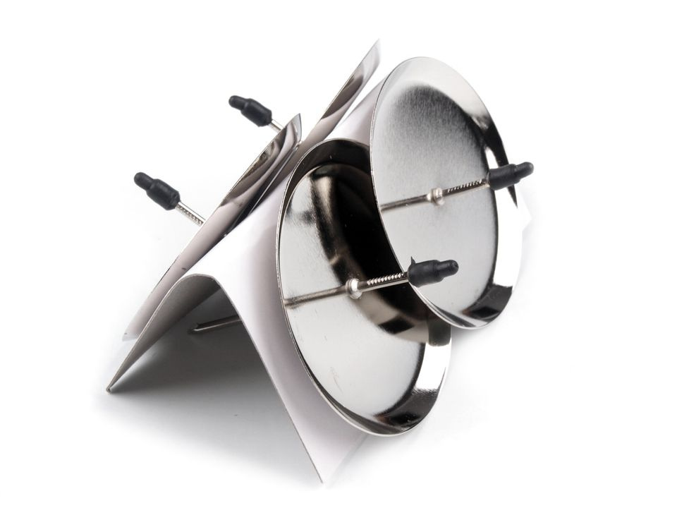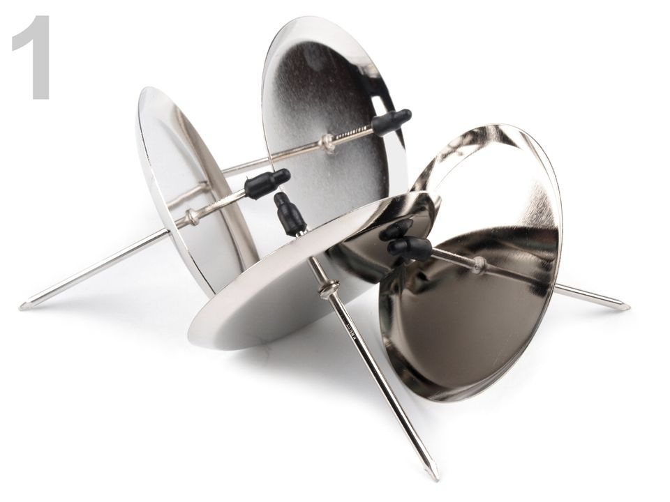 Kovové bodce v klasických vánočních barvách využijete při výrobě nejrůznějších vánočních dekorací, jejichž součástí jsou svíčky, např. adventní věnce. Delší hrot použijete k upevnění na základnu dekorace, svíčku umístíte na kratší hrot v misce.