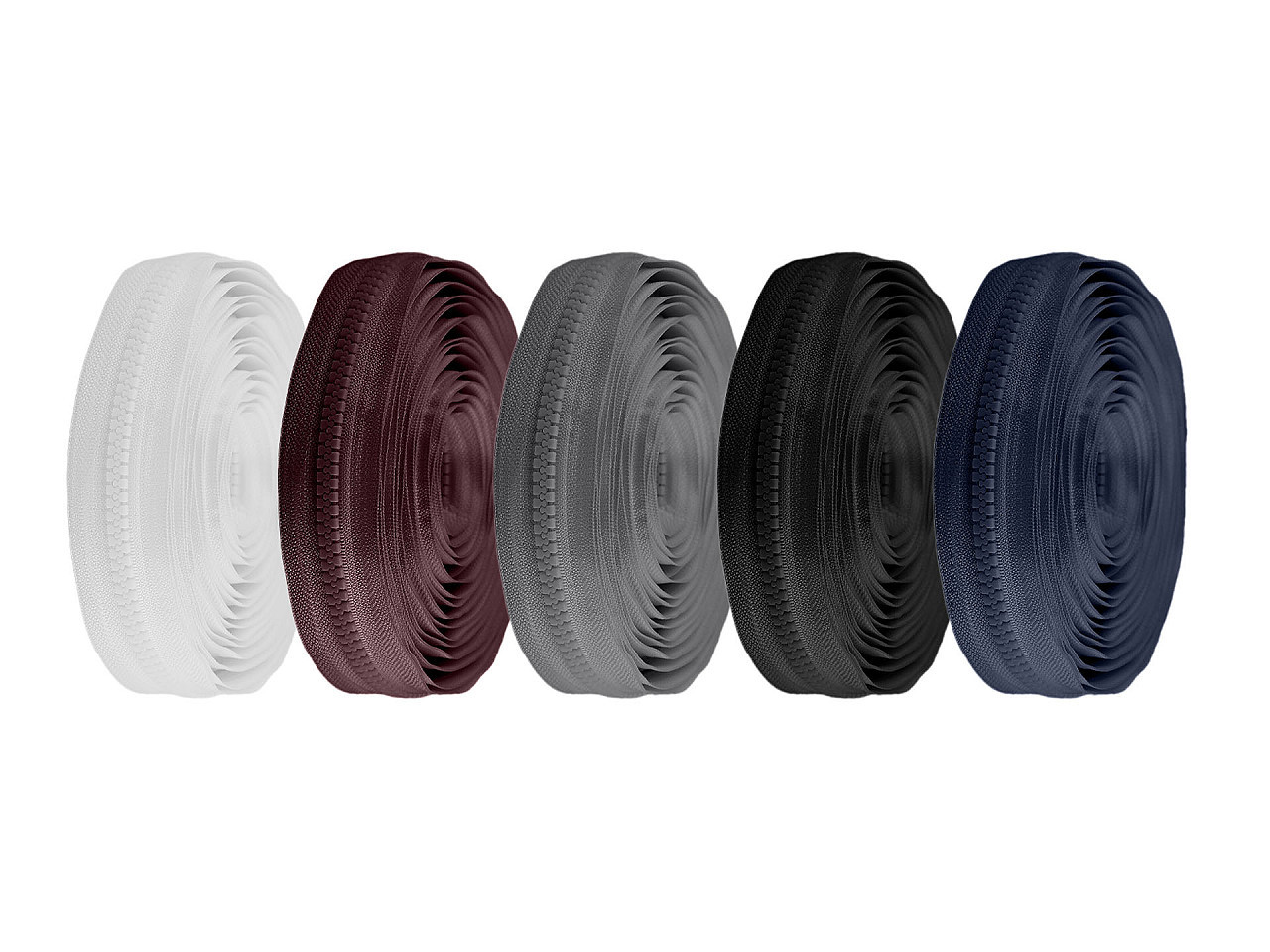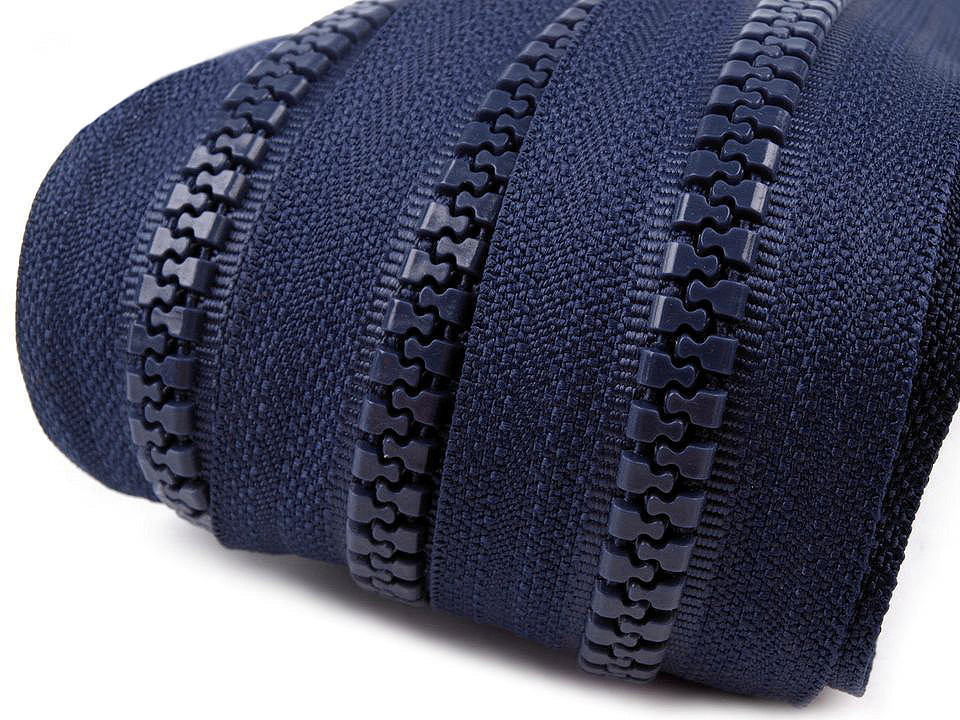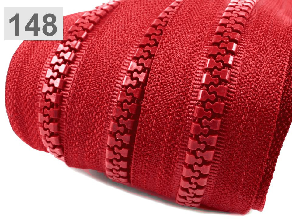 Zip v metráži můžete použít při výrobě stanů, vaků, obalů a všude tam, kde potřebujete zipy v nadstandardní délce. Šíře zoubků zipu je 8 mm.