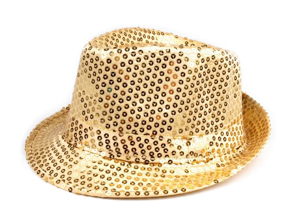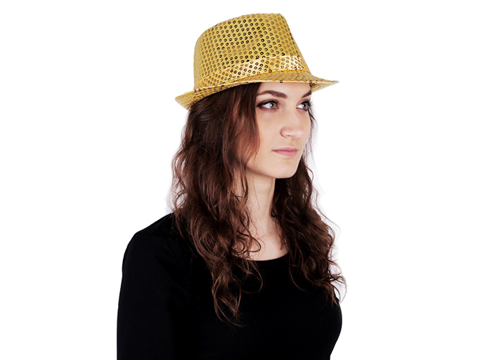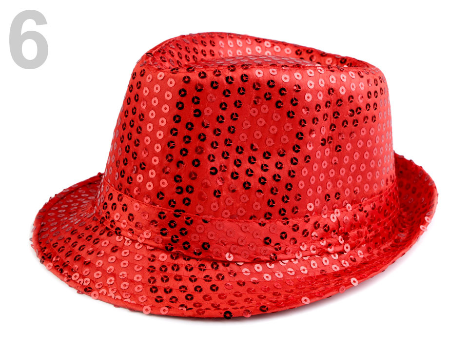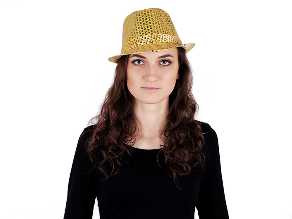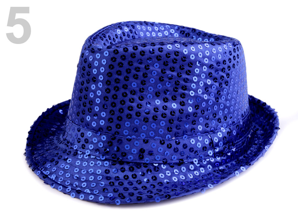 Karnevalové klobouky se staly součástí karnevalového kostýmu, maškarních plesů či oslav. Klobouk je vyroben z polyesteru a celý jeho povrch je posetý flitry, které jsou ke klobouku pevně přišity.