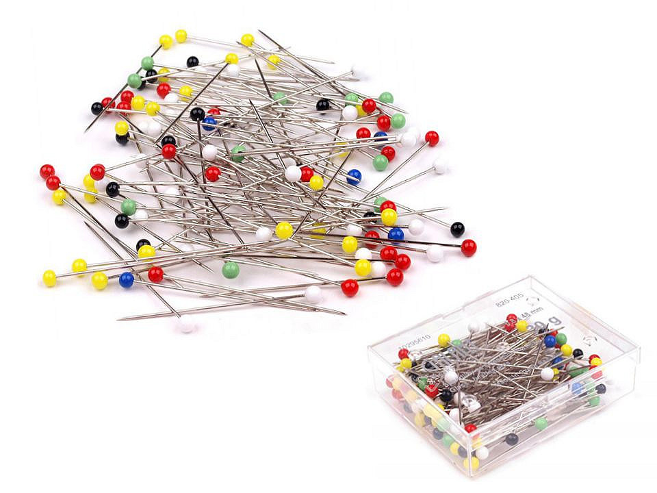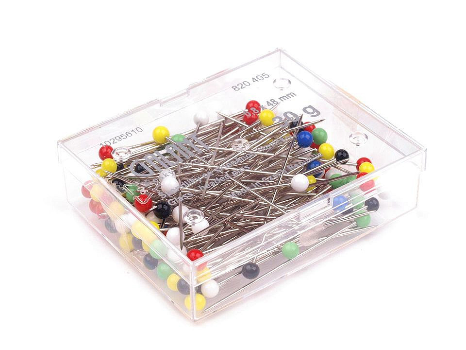 Špendlíky jsou baleny v praktické krabičce po 100 kusech a váží 30 g. Průměr hlavičky je cca 4 mm.
