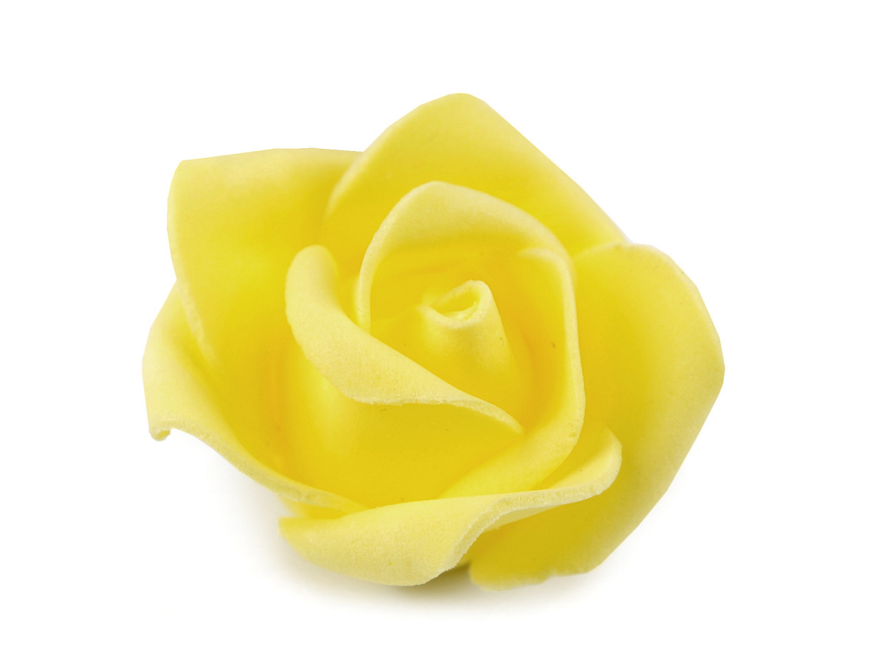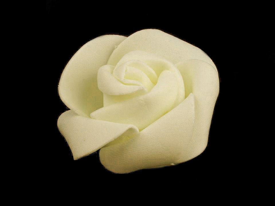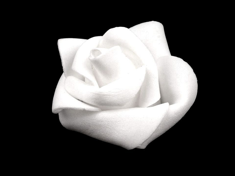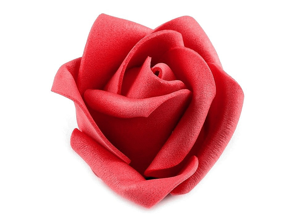 Průměr růží je 4,5 cm. Výška 3,5 cm. Středová část je vyrobena z polystyrenu a obalena okvětními listy.