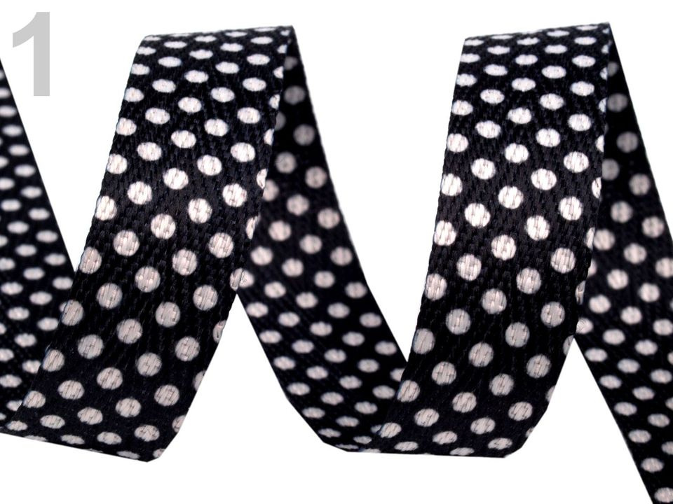 Keprovka šíře 18 mm puntíky - 1 černá