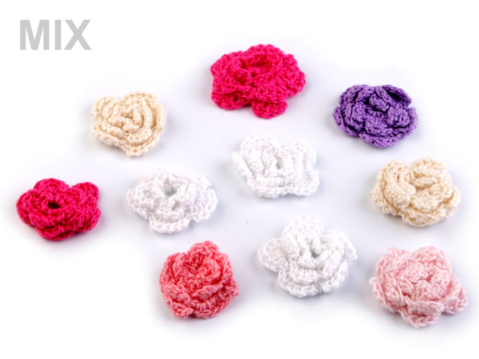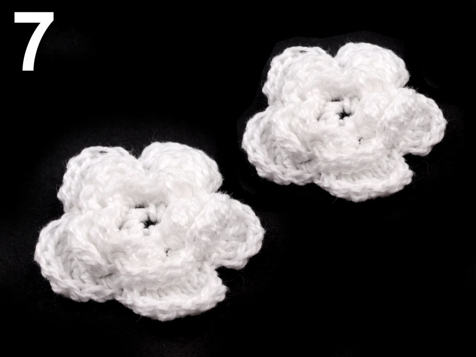 Háčkovaná květina působí díky trojitému vrstvení plně. Má všestranné využití.