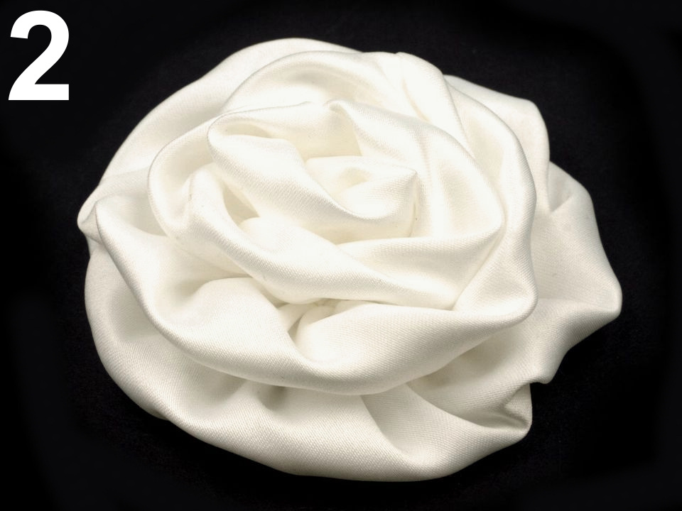 Textilní růže je vyrobena z kvalitního lesklého saténu. Ve spodní části je plstěné kolečko, které umožňuje růži pomocí textilního lepidla přilepit nebo přišít. Květ lze použít jako dekoraci vlasů či šatů družiček i samotné nevěsty. Můžete jí ozdobit také čelenku nebo pomocí brožového můstku použít jako brož. Vaší fantazii se meze nekladou.