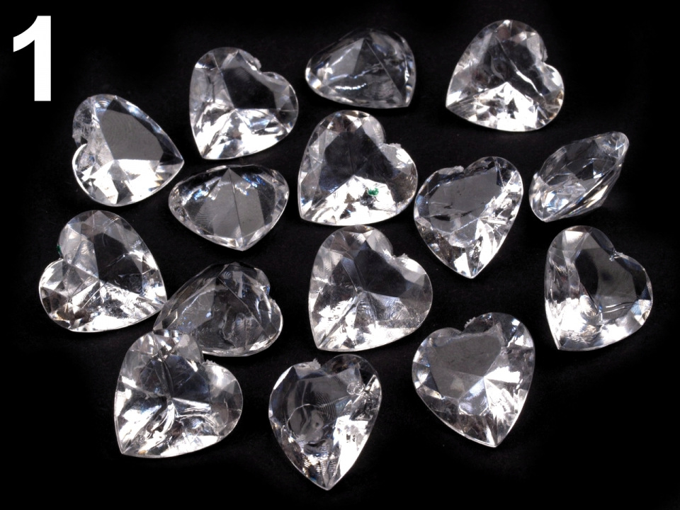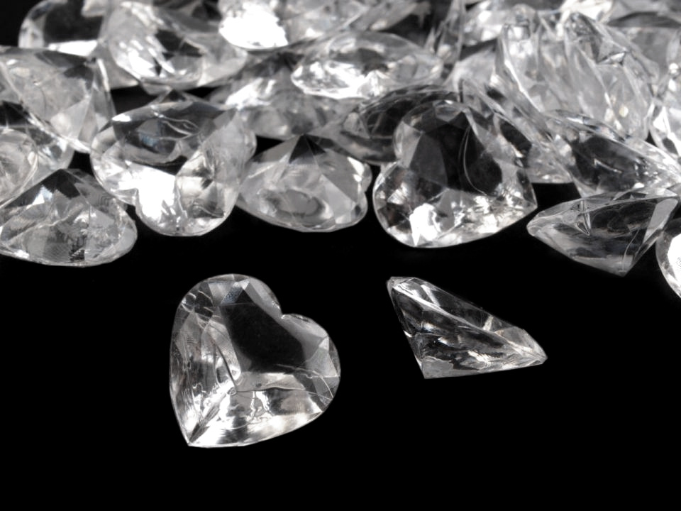 Plastové dekorační kamínky ve tvaru romantických srdíček jsou skvělým produktem. Vzhledem skvěle imitují skleněné kameny, ale oproti nim mají výhodu v tom, jsou lehké a nerozbitné.