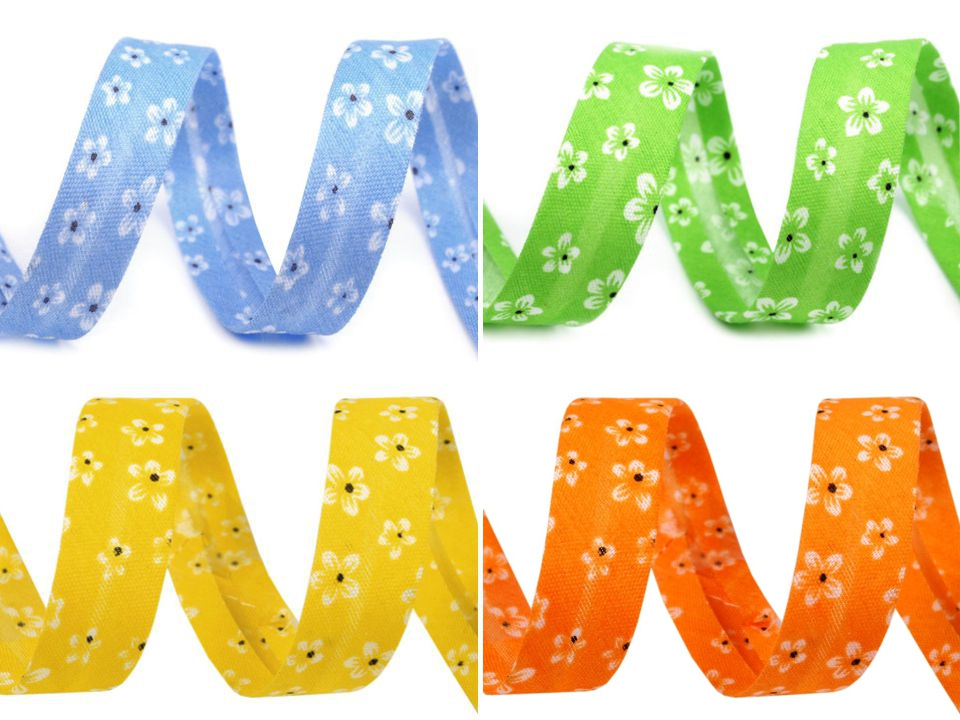 Šikmý proužek se vzorem květů vás naladí na lepší náladu. Nejčastěji se používá k lemování a začišťování okrajů oděvů jako jsou halenky, trička atd. Dále se s ním také můžete setkat na bytovém textily např. ubrusy, deky, polštáře. Nabízíme několik barevných variant.