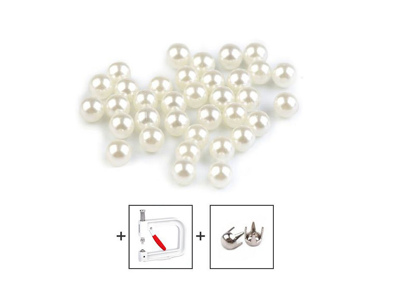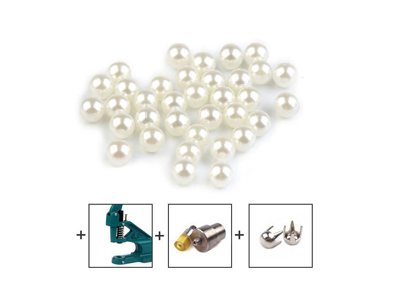 Kuličky s perleťovým povrchem jsou vyrobeny z plastu. Pomocí lisu, vhodného pistonu a cvočku je můžete přinýtovat na jakýkoliv oděv či papír a vytvořit tak originální šátek, šaty či papírové přání.