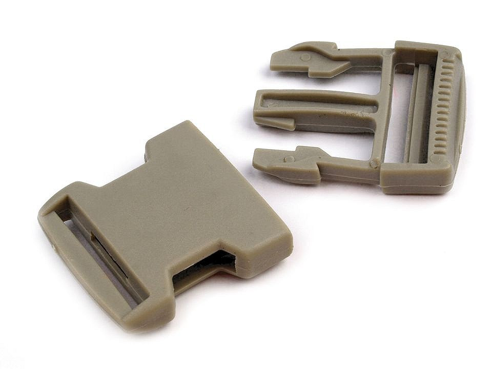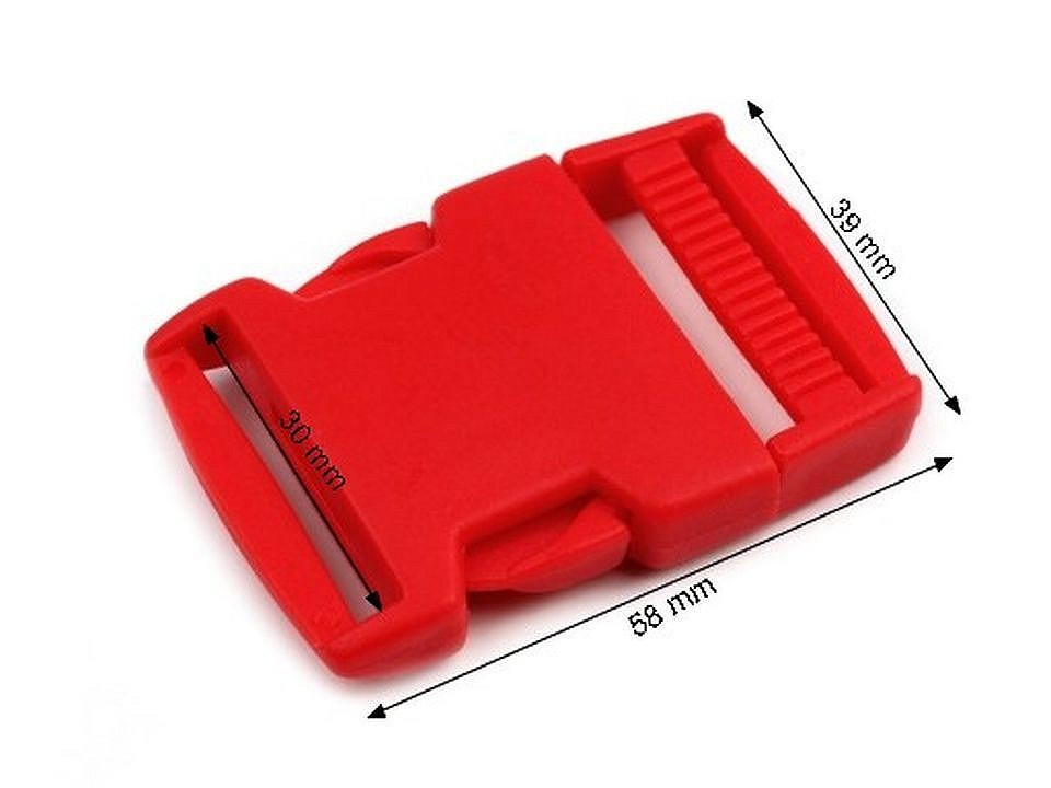 Celková délka zapnuté spony je 58 mm, šíře 39 mm. Vnitřní šíře průvleku je 30 mm. Velmi oblíbená ledvinková spona neboli trojzubec se často používá v textilní galanterii. Délku např. popruhu můžeme nastavit pomocí dvou otvorů, které se nacházejí na jedné straně spony. Tuto sponu využijeme hlavně v textilním odvětví, při výrobě ledvinkových opasků, batohů, brašen apod.Složení: plast